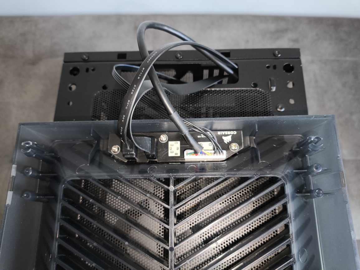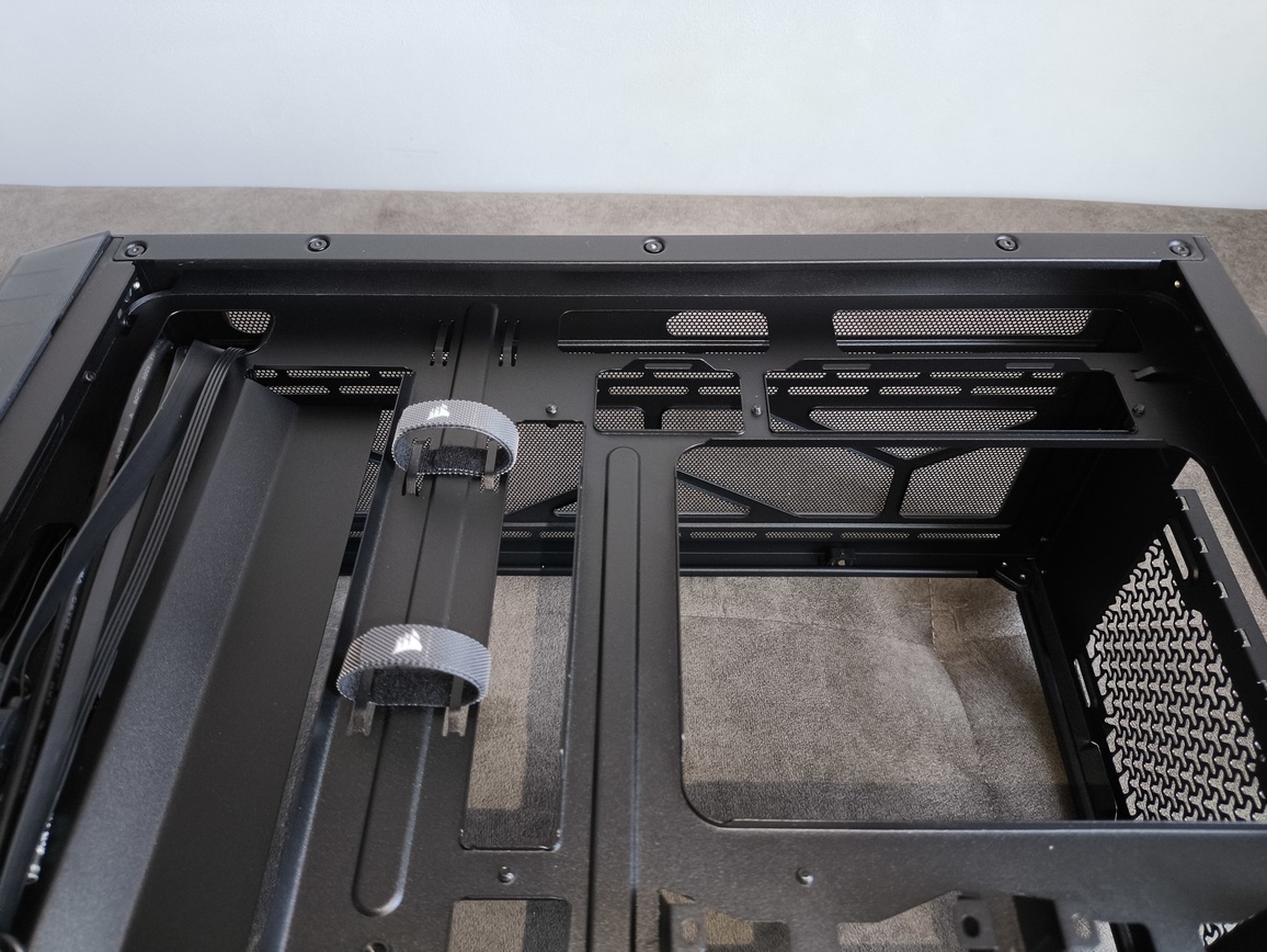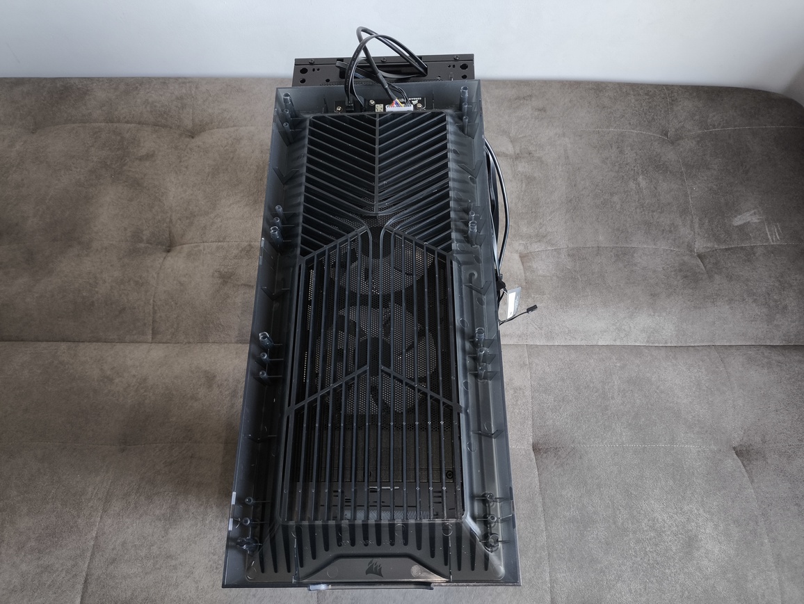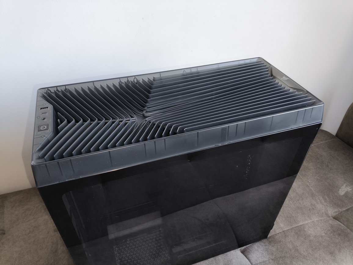 Niestety (choć w kontekście ceny zakupu trudno to jednoznacznie uznać za wadę), producent nie zdecydował się na implementację modułowego systemu FRAME, znanego chociażby z modelu Corsair 4500X. W praktyce oznacza to, że mamy do czynienia z klasycznym, nierozbieralnym panelem górnym, bez możliwości jego demontażu czy rekonfiguracji.