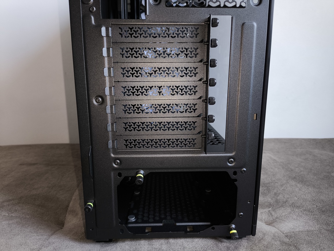 Obudowa może pomieścić do siedmiu poziomo zorientowanych kart rozszerzeń. Można je łatwo zdemontować za pomocą śrub radełkowanych.