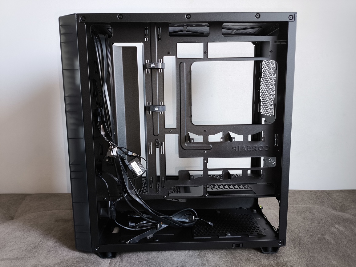 Po zdjęciu tylnego panelu wyraźnie widać jedną z mocniejszych stron konstrukcji – sensowną ilość przestrzeni przeznaczonej na prowadzenie przewodów, co znacząco ułatwia zachowanie porządku wewnątrz obudowy.