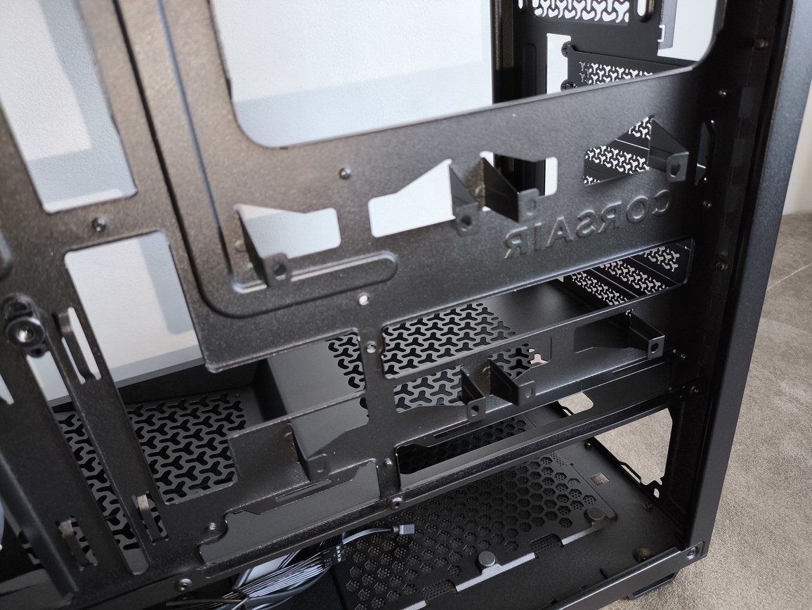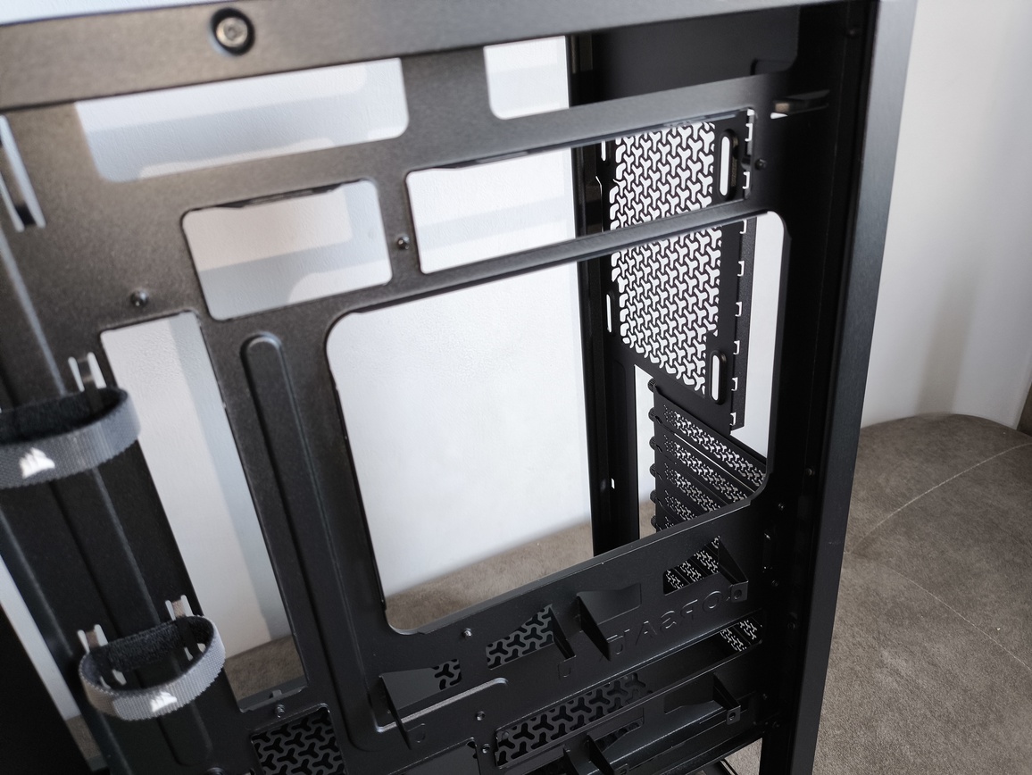 Z drugiej strony jest to w pewnym sensie świadoma polityka Corsair stosowana w konstrukcjach z serii FRAME, gdzie nacisk kładziony jest przede wszystkim na rozbudowany i wydajny system nawiewu z przodu obudowy. Producent pozostawia więc użytkownikowi większą swobodę w konfiguracji tylnej sekcji, co może być zarówno zaletą, jak i wadą – w zależności od podejścia i budżetu.