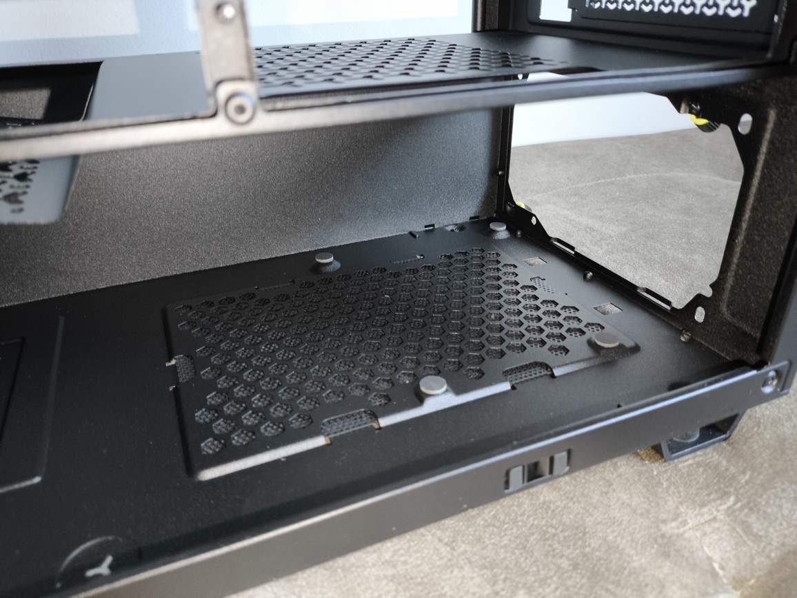 Zastosowana blacha cechuje się wystarczającą grubością oraz przeciętną sztywnością, jednak ogólnie czemu tacka nie wykazuje tendencji do nadmiernie mocnego wyginania się podczas montażu podzespołów. Sam proces instalacji płyty głównej przebiegnie bezproblemowo, a duże, centralnie umieszczone wycięcie pod backplate chłodzenia procesora zapewnia wygodny dostęp bez konieczności demontażu całej platformy.