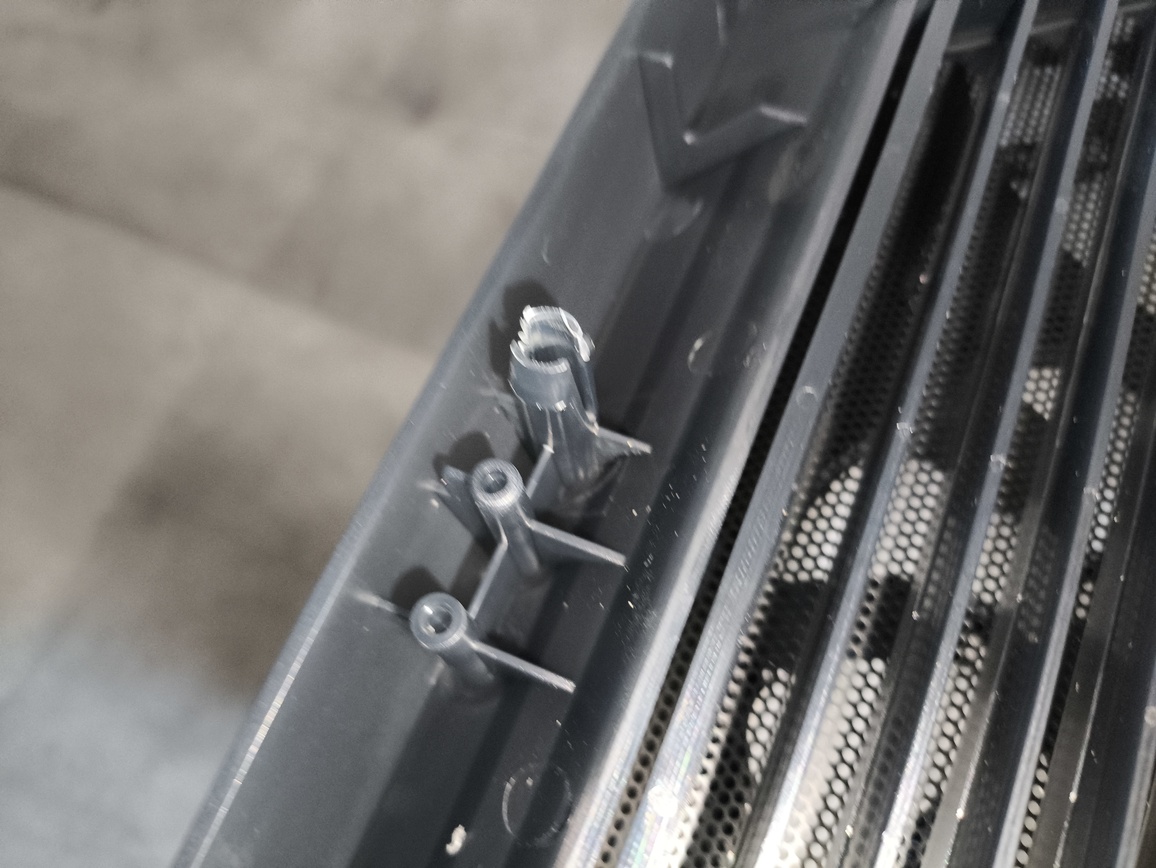 - przedni – umieszczony za wentylatorami, a przed demontowanym panelem frontowym. Montowalny na magnesy (metalowa siatka ma przytwierdzone na stałe magnesy). Trochę to dziwne technicznie rozwiązanie, ale mimo wszystko swoją rolę spełnia.