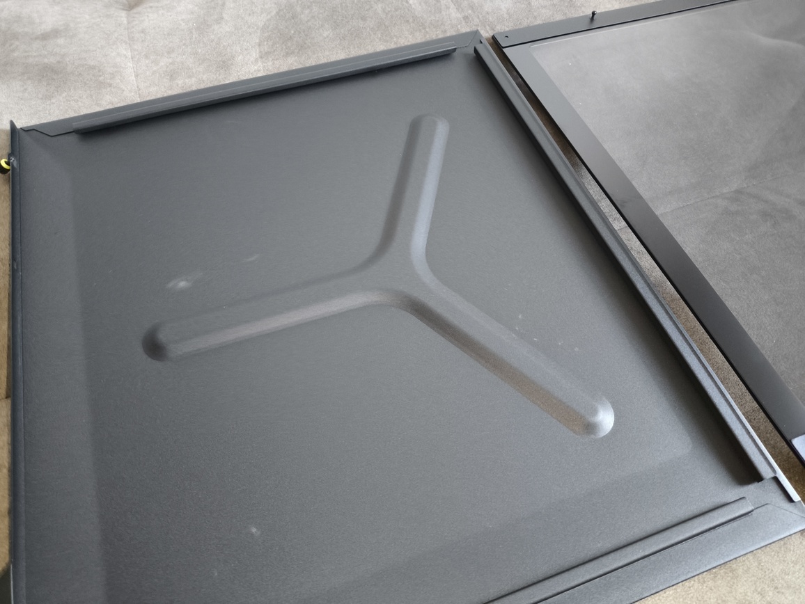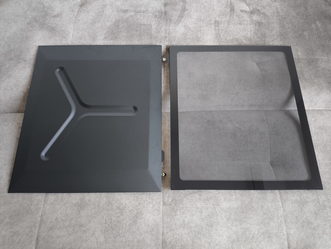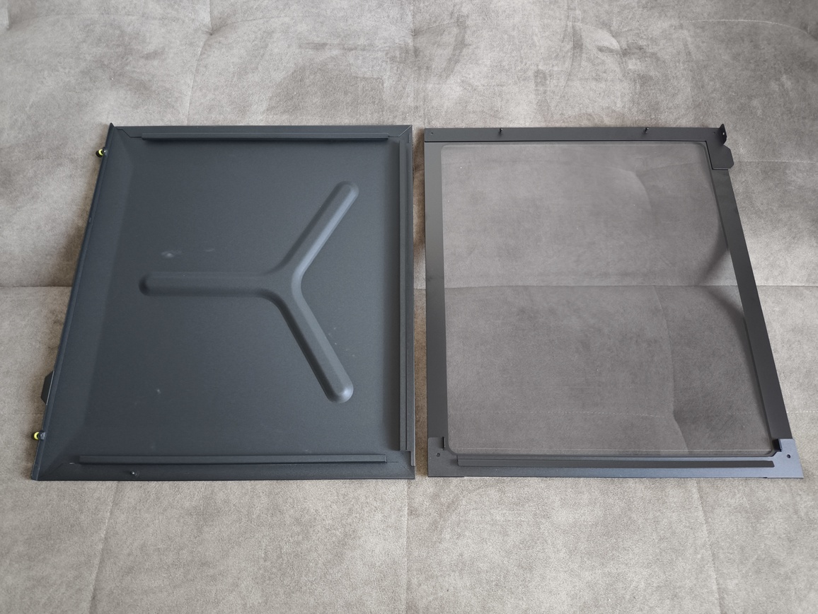 | Panele boczne | lewy – szkło hartowane 3 mm (lekko przyciemniane) prawy – stalowy (z wytłoczeniem w kształcie litery X) |