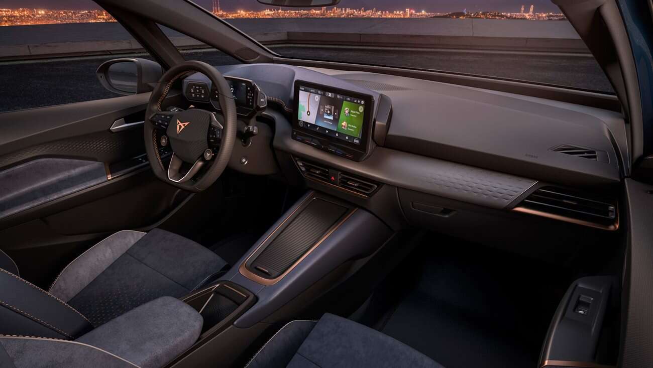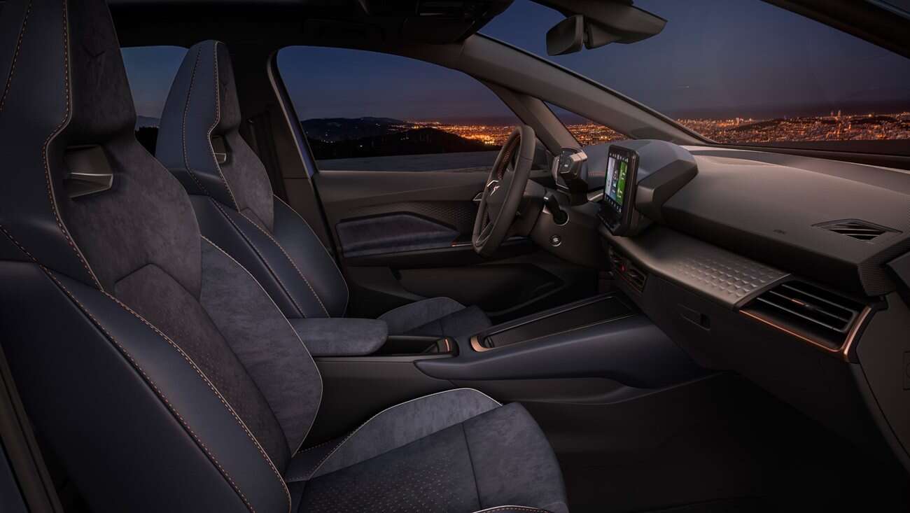 Cupra el-Born zapewnia szereg udogodnień wewnątrz, bo w grę wchodzi 10-calowy ekran infotainment, wyświetlacz head-up, a nawet zintegrowany system pompy ciepła, którego pochodną chwali się Tesla w Modelu Y. Kupujący otrzymają także parę foteli kubełkowych i nową sportową kierownicę. Cena pozostaje nieznana.