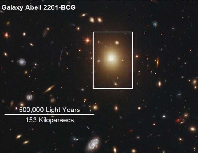 Przedstawiciele Uniwersytetu Michigan zauważyli, że centralna galaktyka gromady Abell 2261 posiada najgęstsze skupiska gwiazda poza swoim centrum. Z drugiej strony, obserwacje Chandry nie wykazały w tych samych miejscach istnienia skupisk promieniowania rentgenowskiego, które zwracałyby szczególną uwagę.