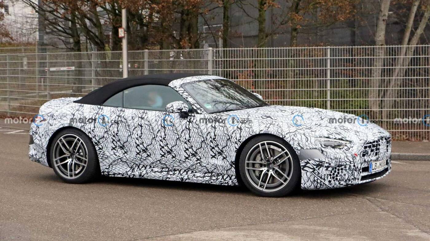 Nowy zestaw zdjęć szpiegowskich po raz pierwszy ukazał materiałowy, czyli miękki dach tego kabrioletu, który zastąpi stosowany obecnie twardy wariant. Dodatkowo zapewniają jak do tej pory najlepszy wgląd na szczegóły tej nowej Klasy SL, co ujawniło m.in. wygląd wysuwanych klamek drzwi.