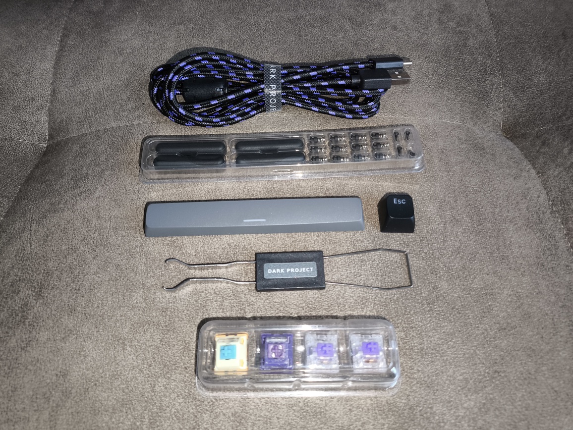 - standardowy keycap i switch puller, narzędzia absolutnie niezbędne do wymiany nakładek i przełączników, które umożliwiają łatwe eksperymentowanie z własną konfiguracją bez ryzyka uszkodzenia klawiatury.