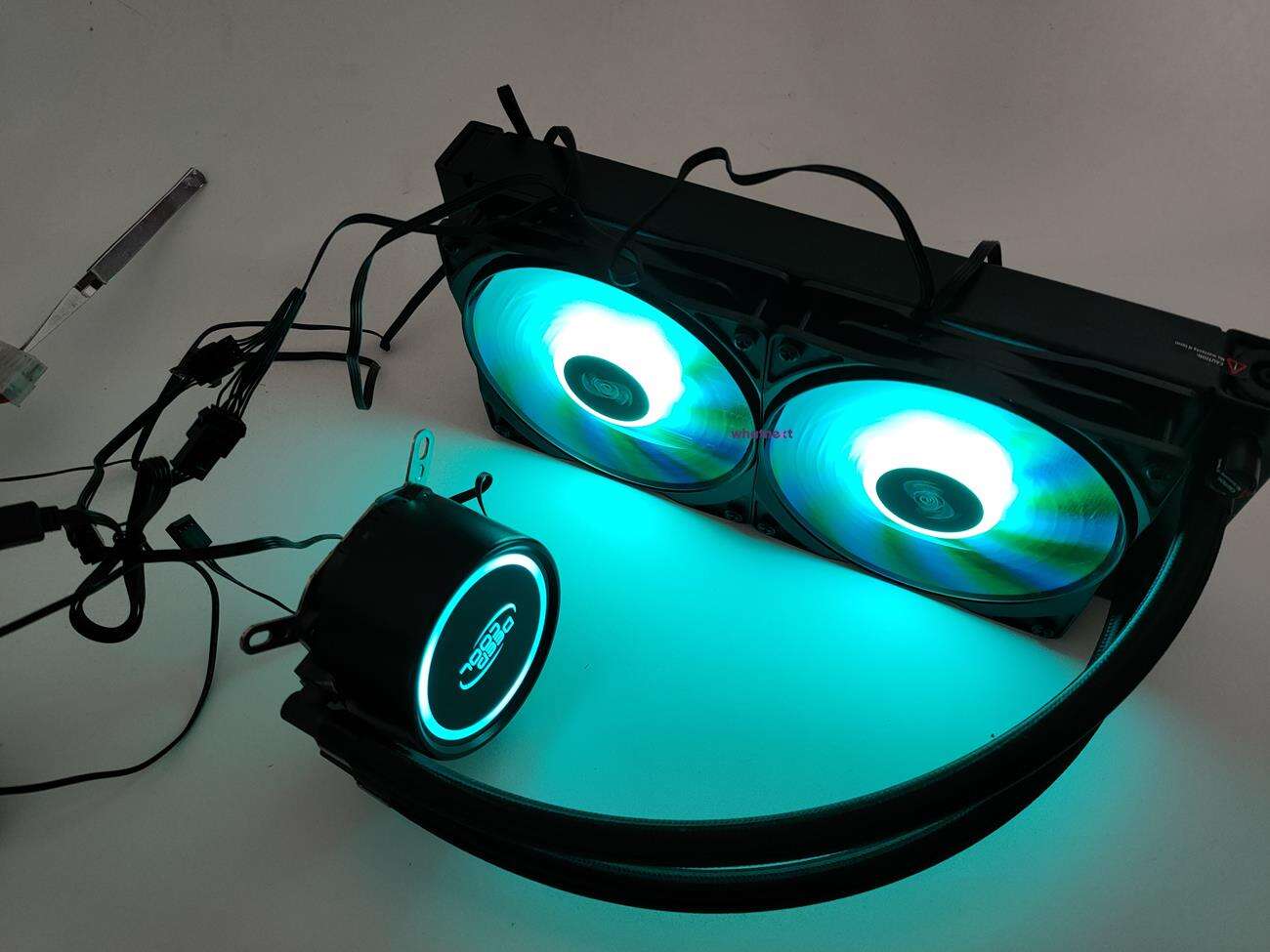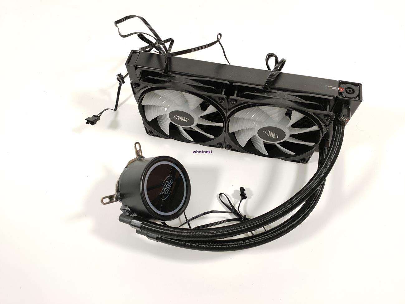 Pierwsza różnica jest w akcesoriach – nie ma dużego huba RGB. Jest za to rozdzielacz i przejściówka pozwalająca podłączyć RGB do płyty głównej. Kolejna rzecz to rozmiary chłodnicy. Tym razem wynoszą one 282 x 120 x 27 mm. Ma to bezpośredni związek z zastosowaniem technologii zapobiegającej przeciekom, która zwiększa te wymiary. Jest ona jednak sporym plusem, bowiem gwarantuje, że w układzie nie dojdzie tak łatwo do wycieku cieczy.