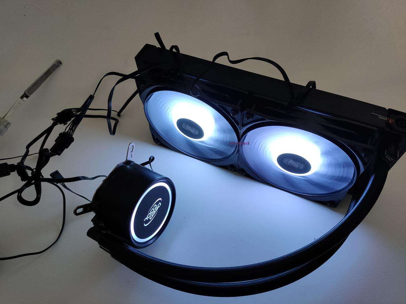 I to tak naprawdę wszystko co się zmieniło. AiO w dalszym ciągu ma fajne podświetlenie RGB, które może się podobać. Wentylatory to te same modele o prędkości 1800 RPM, a węże mają 310 mm długości. Także sam montaż jest banalny, co jest sporym plusem.