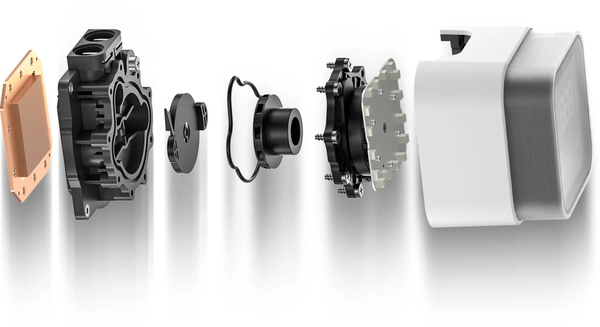Co więcej, górna pokrywa jest zdejmowalna i można ją zamocować w jednej z czterech możliwych orientacji, co znacząco ułatwia montaż chłodzenia w dowolnej pozycji i pozwala dopasować wyświetlacz do preferowanego widoku w obudowie. Wymiary całej obudowy pompy to: