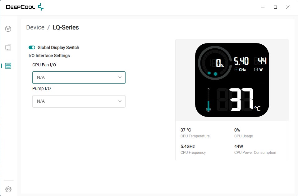 Dodatkowo, DeepCool udostępnia własne oprogramowanie o nazwie Deep Creative, które odpowiada za obsługę wyświetlacza LCD znajdującego się na bloku pompy. Interfejs tej aplikacji jest przejrzysty, prosty w obsłudze i pozwala na szybki dostęp do podstawowych ustawień.