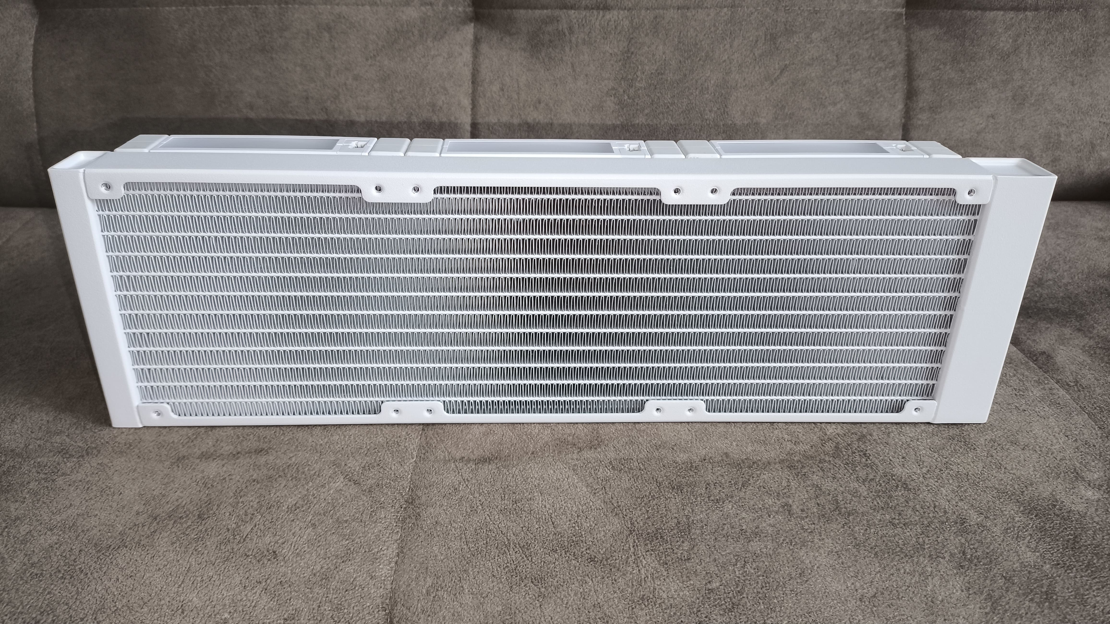 Radiator wykonany jest z aluminium i ma wymiary 402 x 127 x 27 mm. Po zamontowaniu wentylatorów o standardowej grubości 25 mm, całkowita wysokość zestawu chłodzącego wzrasta do około 52 mm. W radiatorze zastosowano 20 żeber na cal (FPI) oraz 12 kanałów przepływu cieczy chłodzącej, co zapewnia efektywną wymianę ciepła.