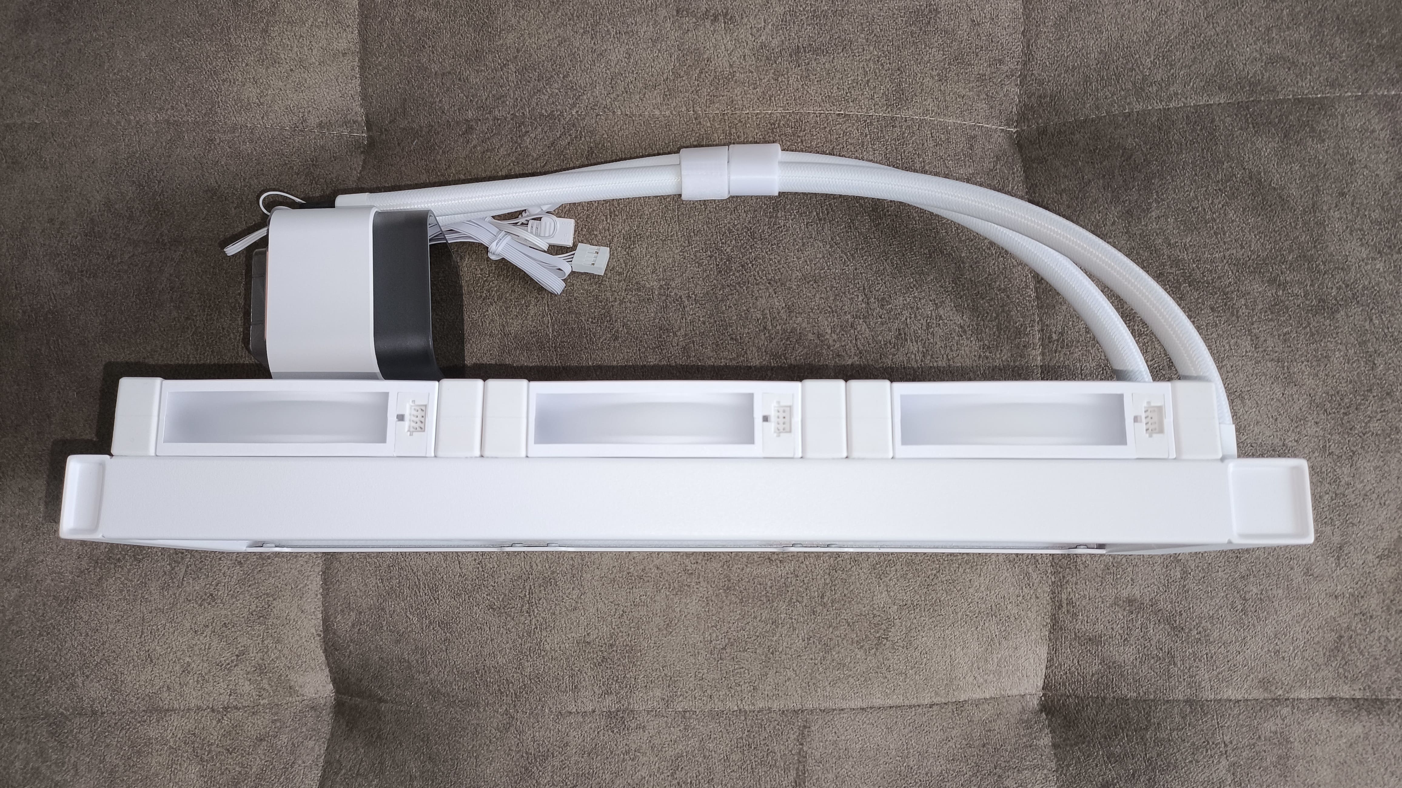 W zestawie znajdują się także 12 śrub mocujących radiator oraz 12 śrub do wentylatorów, co umożliwia stabilne i solidne przymocowanie wszystkich elementów. Dodatkowo do rur chłodzenia zamocowane są dwie paski rzepowe, które pomagają utrzymać porządek i zabezpieczają węże podczas instalacji.