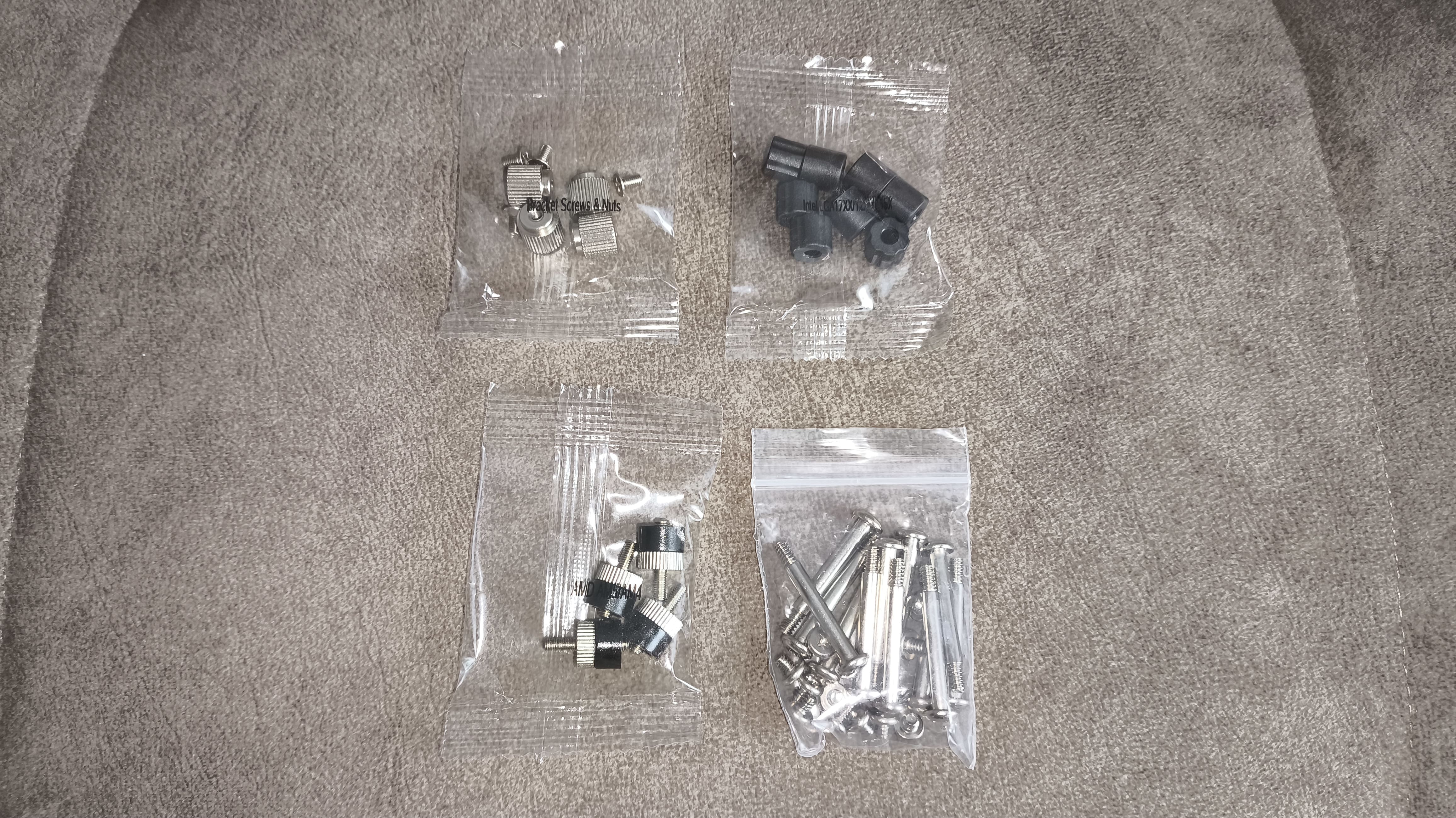 Producent dołącza także backplate dedykowaną dla platform Intel oraz komplet montażowy dla platform AMD i Intel, w tym dwa różne zestawy uchwytów montażowych (2x dla AMD, 2x dla Intel). Wszystkie niezbędne śruby i elementy mocujące są obecne: 4 śruby do uchwytów, 4 śruby motylkowe (thumb screws), 4 dystanse do socketów Intel LGA 1700/1851 oraz 4 dystanse do socketów Intel LGA 115x/1200, a także 4 śruby dystansowe dla platform AMD.