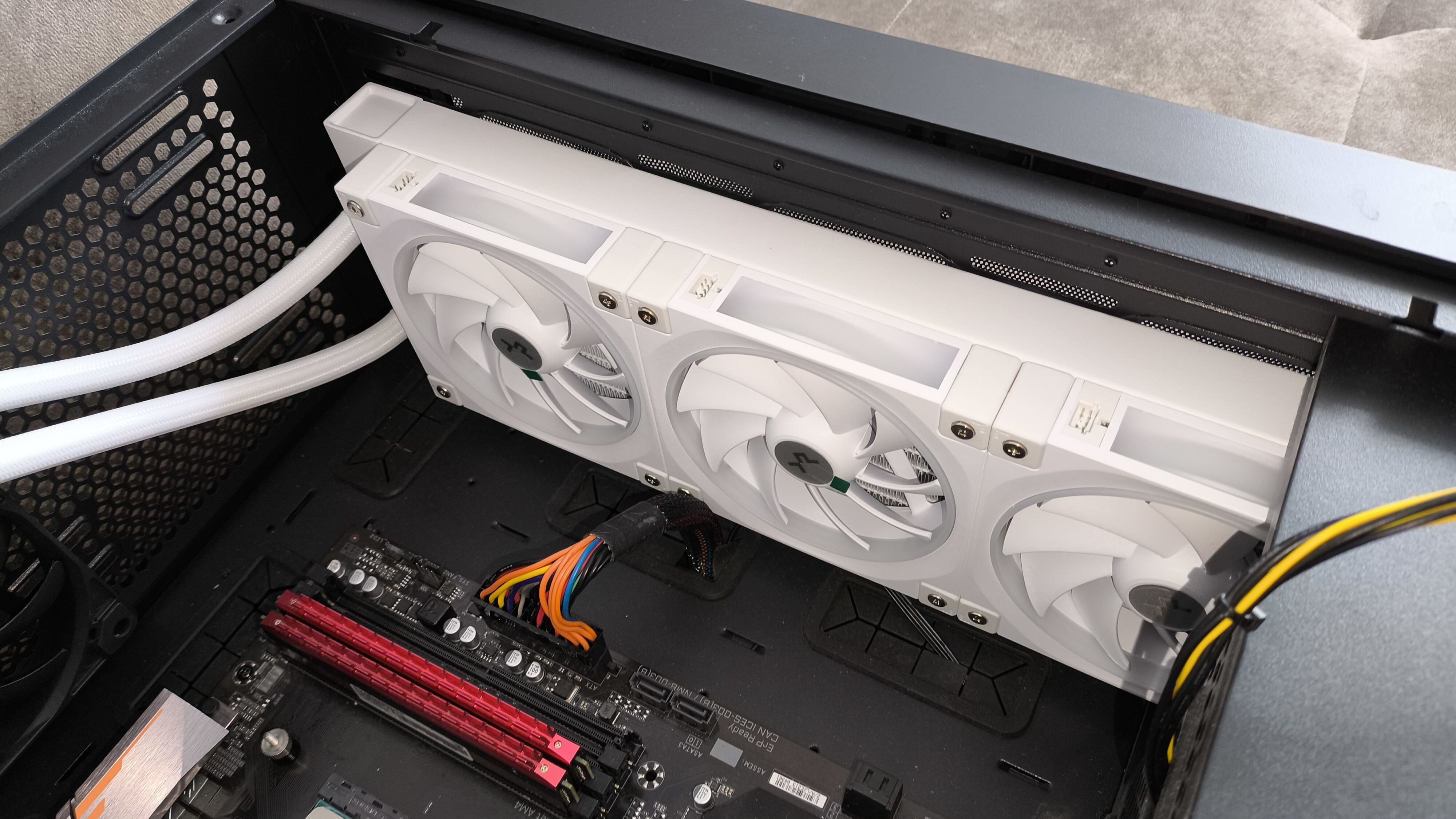 - Wentylatory: 3 x 120 mm DeepCool FD12 ARGB (fabrycznie zamontowane na radiatorze)