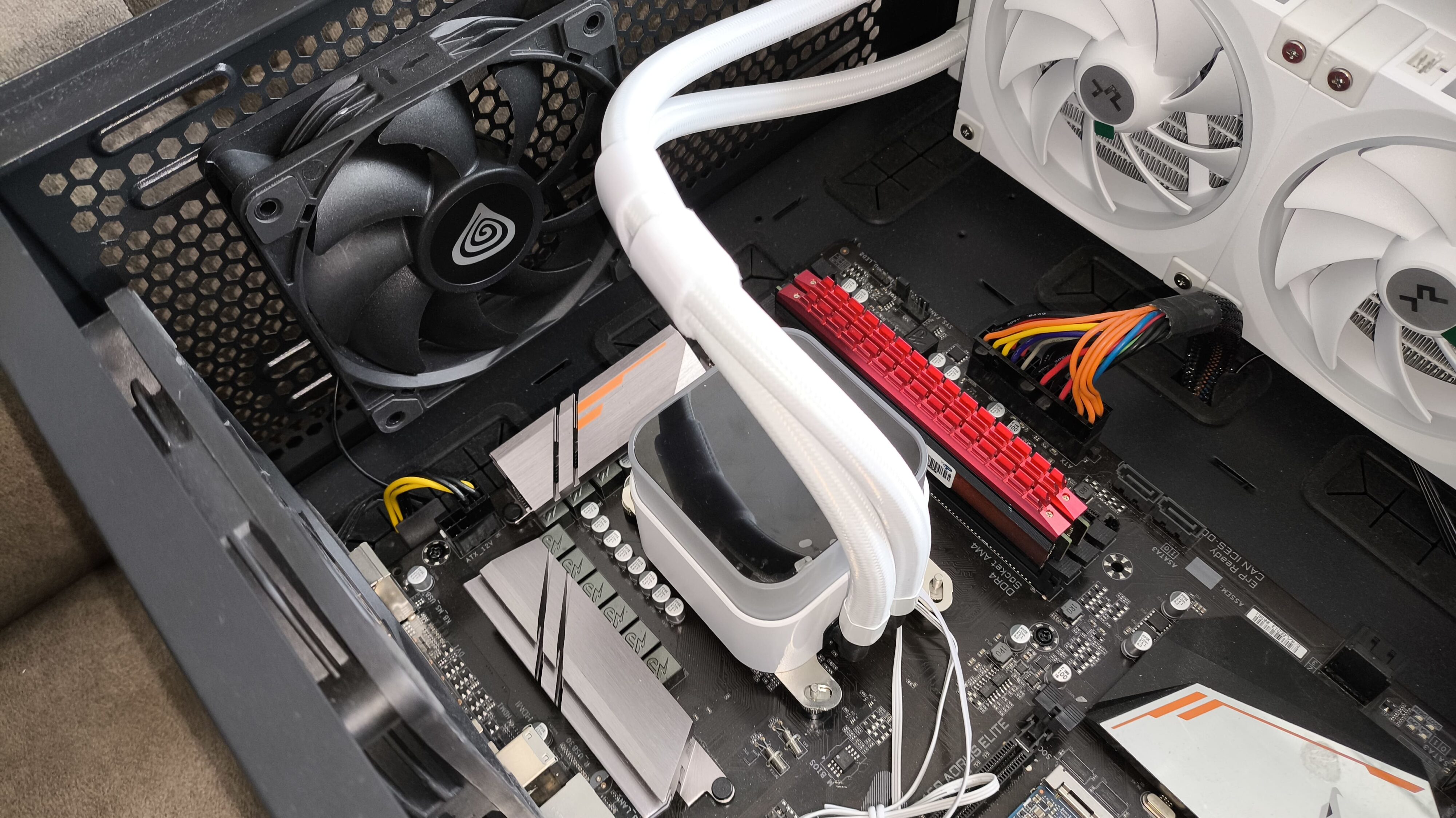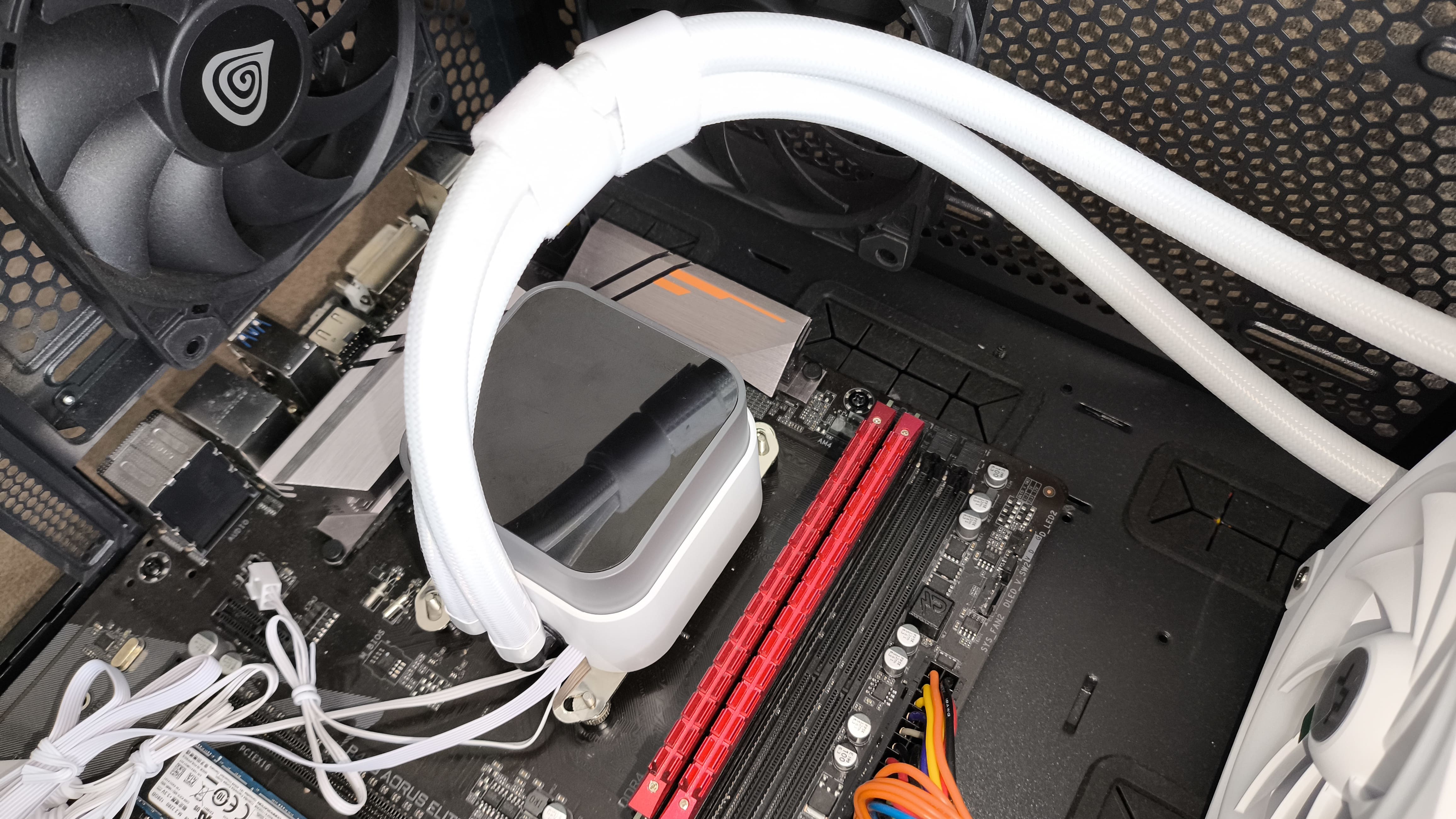 Chłodzenie DeepCool LQ360 WH wykorzystuje standardowe złącza dla podświetlenia adresowalnego RGB (5V 3-pin), dzięki czemu bez problemu współpracuje z oprogramowaniem producentów płyt głównych, takimi jak ASUS Aura Sync, MSI Mystic Light, ASRock Polychrome czy GIGABYTE RGB Fusion. Testy przeprowadzono na płycie głównej Gigabyte B450 Aorus Elite.