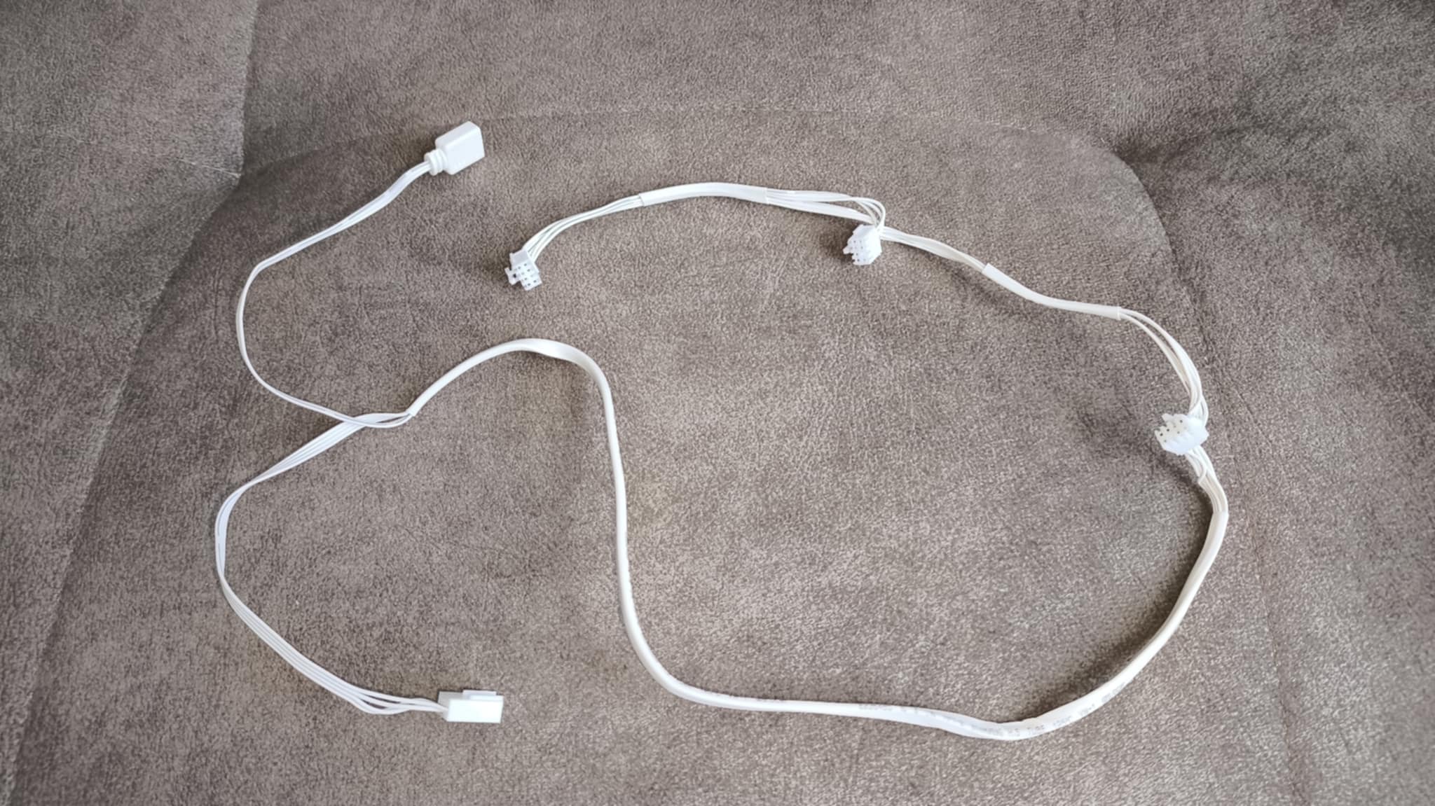 - trzeci kabel to przewód ARGB z 3-pinowym, 5-woltowym złączem, który odpowiada za podświetlenie LED i jego sterowanie