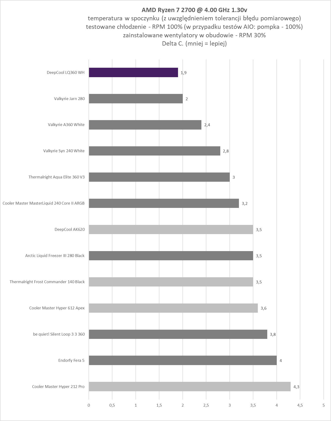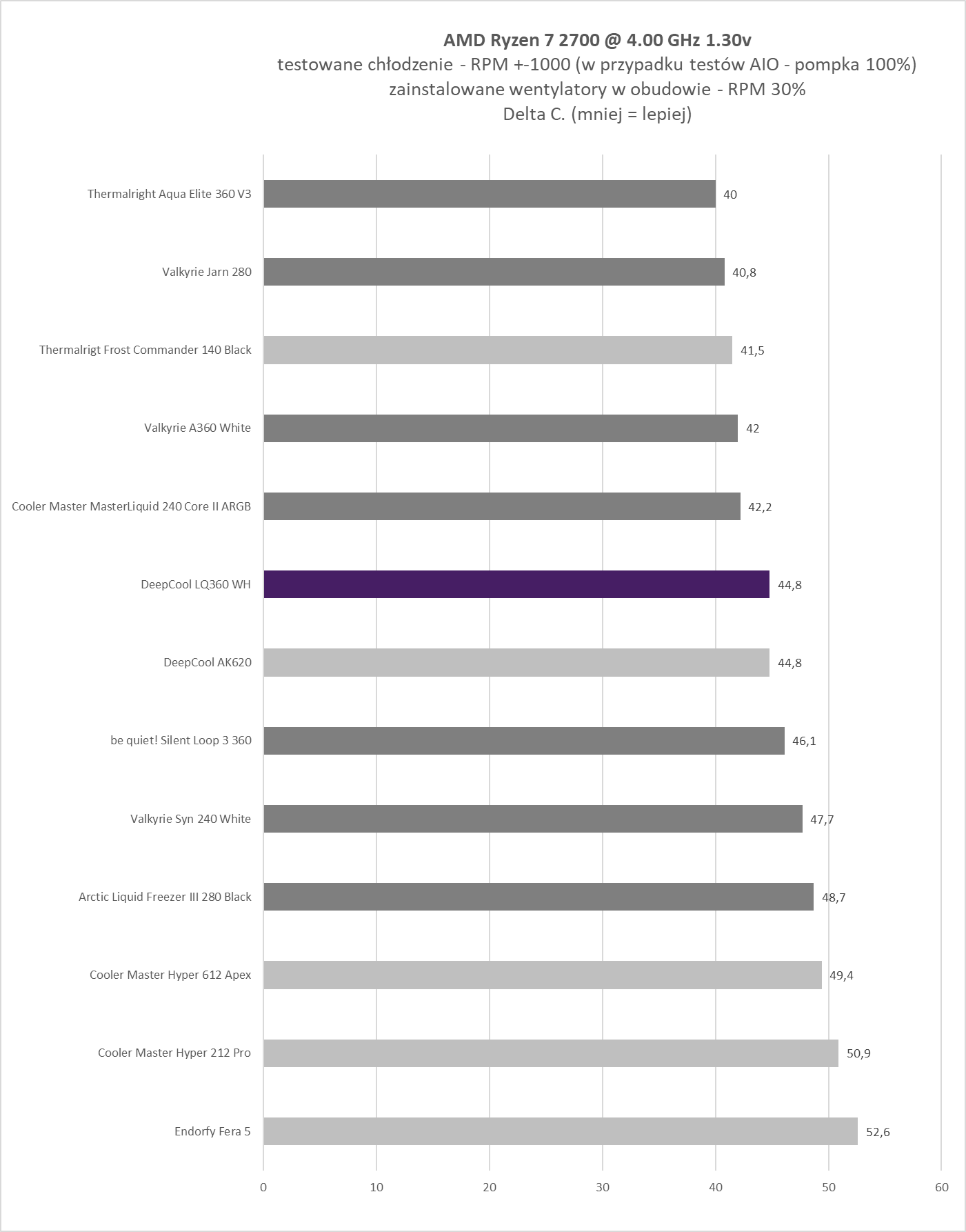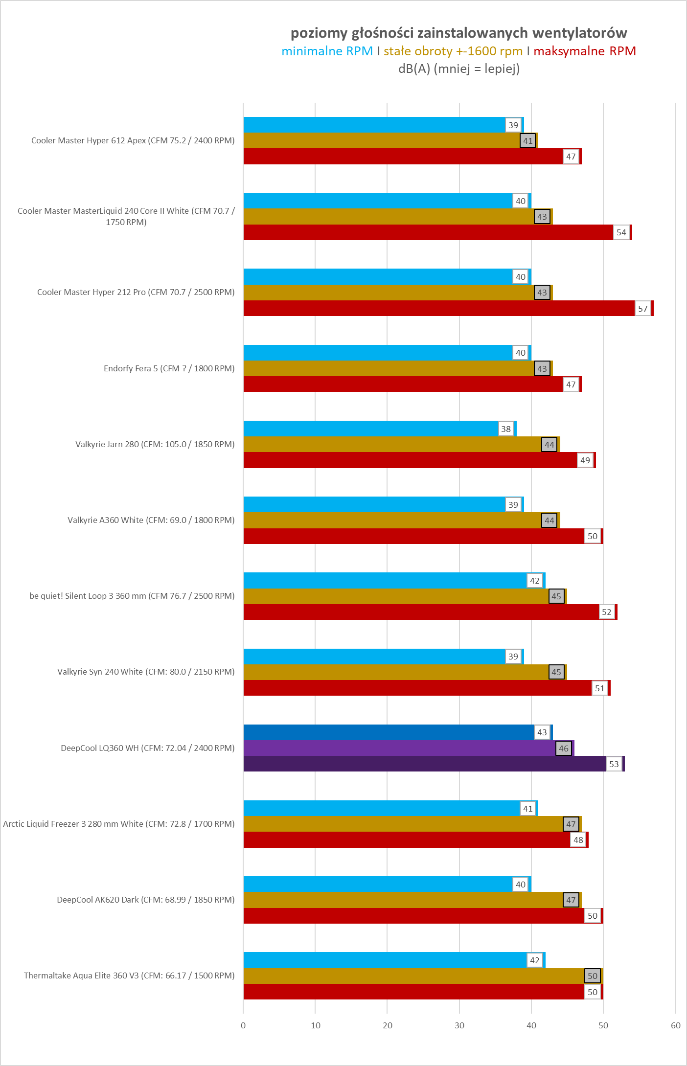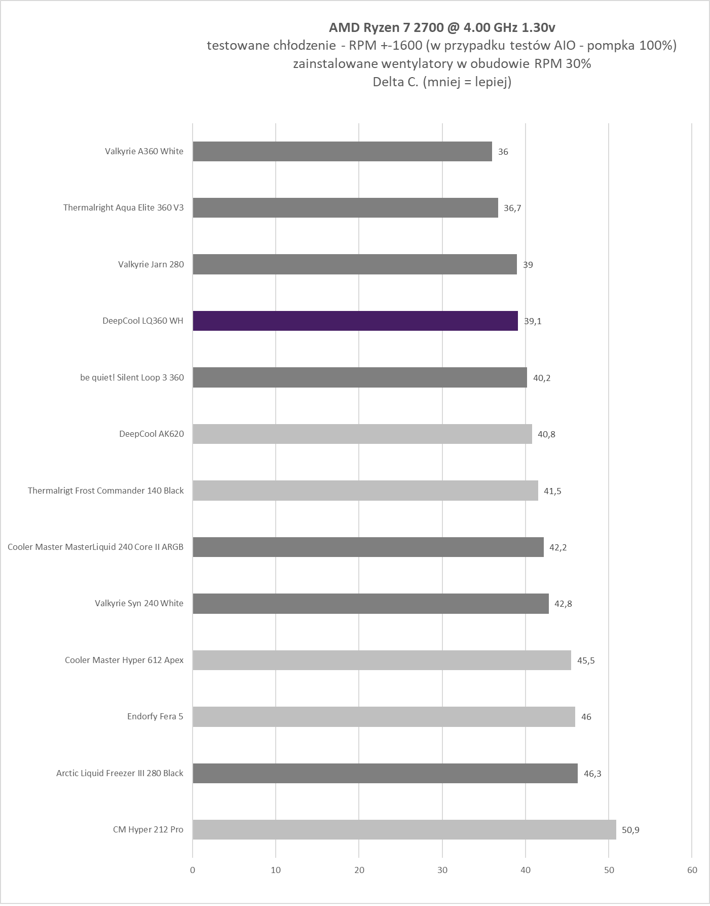 Podsumowując. W swojej klasie cenowej LQ360 WH sumarycznie jest produktem godnym polecenia dla osób poszukujących estetycznego (jak ktoś lubi białe AIO), funkcjonalnego i jak widać po wynikach, też i efektywnego chłodzenia wodnego.