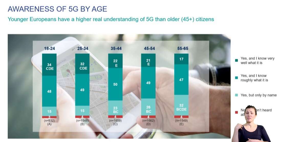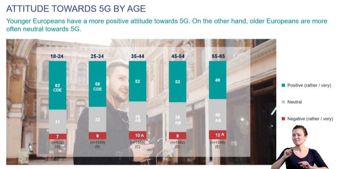 Nastawienie do sieci 5G w Europie pozytywne i takie podejście ma 54% badanych. Przy 36% osobach nastawionych neutralnie i 10% negatywnie. W tym przypadku również więcej pozytywnego nastawienia mają osoby młode.