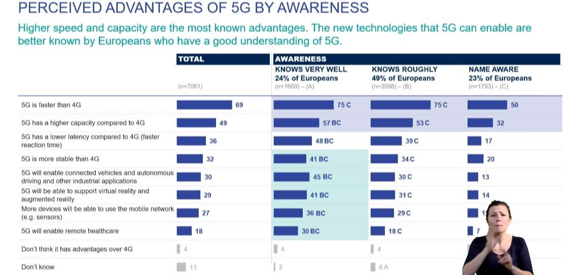 O sieci 5G słyszeli niemal wszyscy Europejczycy. Ale dobrą znajomością technologii może pochwalić się tylko 24% z nich, a znajomością pobieżną 49%. Sieć 5G z nazwy zna 23% osób, a tylko 4% o niej nie słyszało. W Polsce dobrą wiedzą na temat sieci 5G może pochwalić się 17% osób.
