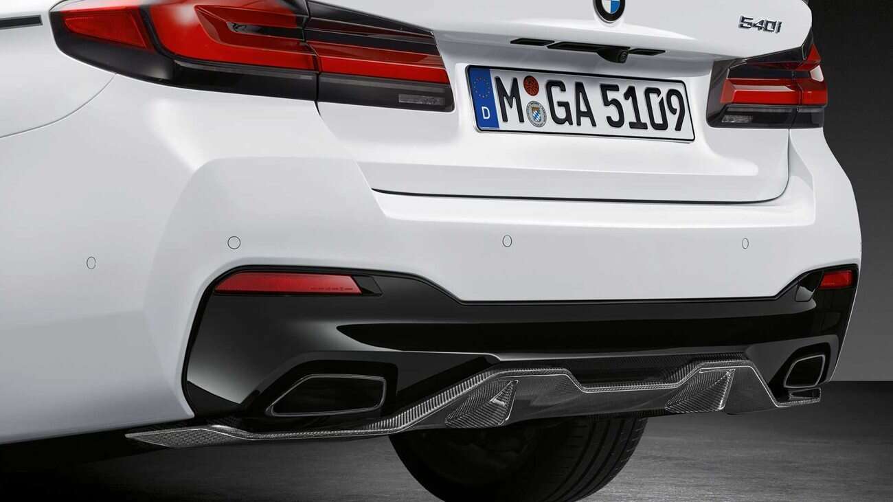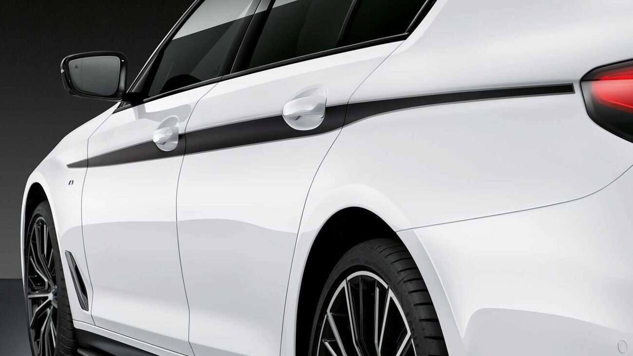 Części można już zamawiać w wybranych salonach BMW na całym świecie, a począwszy od standardowej Serii 5, model otrzymuje pełny zestaw karoserii wykonany z włókna węglowego. Ten obejmuje elementy pokroju przedniego splittera, przedłużenia przedniego zderzaka, zmodyfikowanej kratki, bocznych progów, tylnego dyfuzora zderzaka w błyszczącym czarnym wykończeniu, tylnego spojlera, czy nowego korku wlewu paliwa.