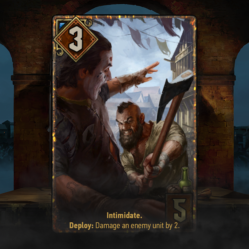 Skąd brać pieniądze zapytacie? I będzie to dobre pytanie, bo przed przekupstwem trzeba będzie uciułać nieco grosza, o co postarają się jednostki albo karty w stylu poniższej, albo zabicie wrogiej jednostki z wyznaczoną za jej głowę Nagrodą równą jej sile bazowej. Każda karta pokroju poniższej jest uznawana za Zbrodnię, a te się opłacają, bo jednostki z Zastraszeniem wzmocnią się za każde ich użycie.