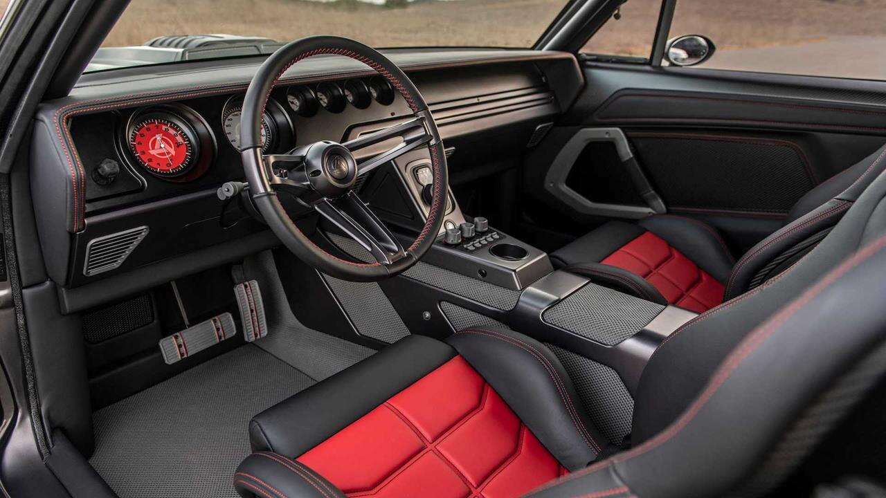 Sam silnik jest wyjątkowy, ale i tak wszystko w tym Dodge Charger 1970 robi nadwozie z włókna węglowego klasy lotniczej, które zostało wstępnie zaimpregnowane w celu zapewnienia grubości panelu i jednorodności splotu. Wygląda rzeczywiście, niczym z piekła rodem, co podkreśla wnętrze bazujące na czerwono-czarnej skórze.