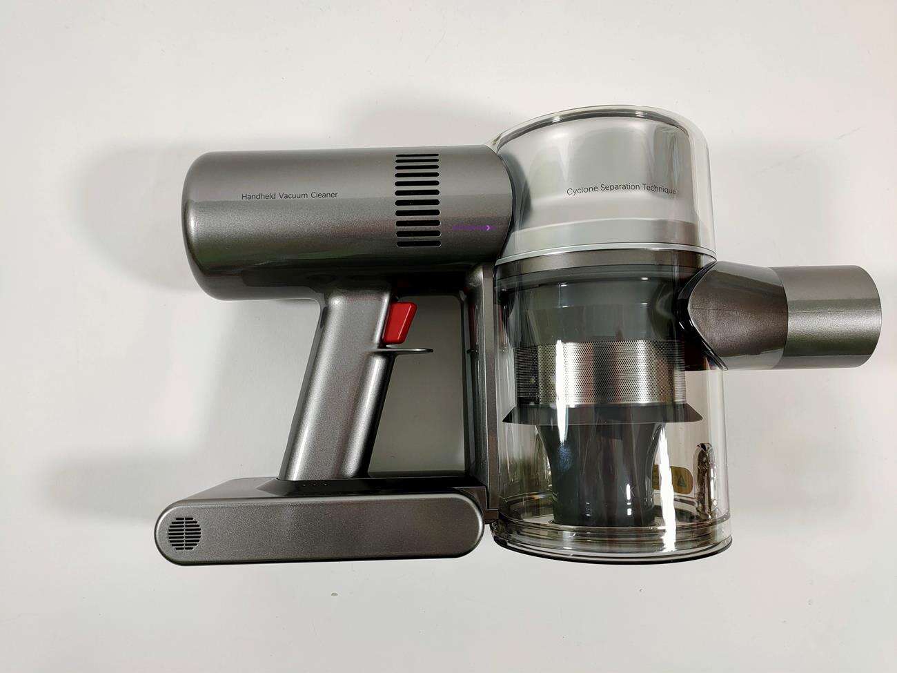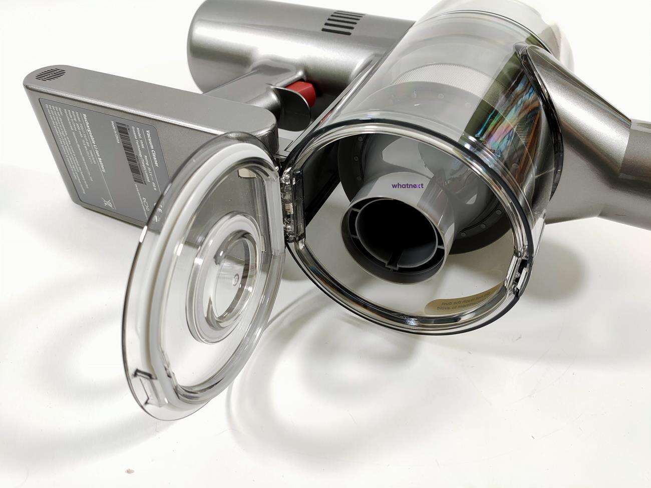 Odkurzacz ma moc 450 W, a moc ssąca wynosi do 22 kPa (150 AW). Silnik cyklotronowy działa z prędkością 125 000 RPM. Tutaj warto też wspomnieć, że całość ma 5-stopniowy poziom filtracji, co pozwala wyłapać nawet najdrobniejszy brud. Sam filtr HEPA można też łatwo wyciągnąć od góry odkurzacza i wyczyścić. Bateria ma pojemność 3000 mAh i ma starczyć na do 1,5 h działania. Czas ładowania wynosi 4 godziny.