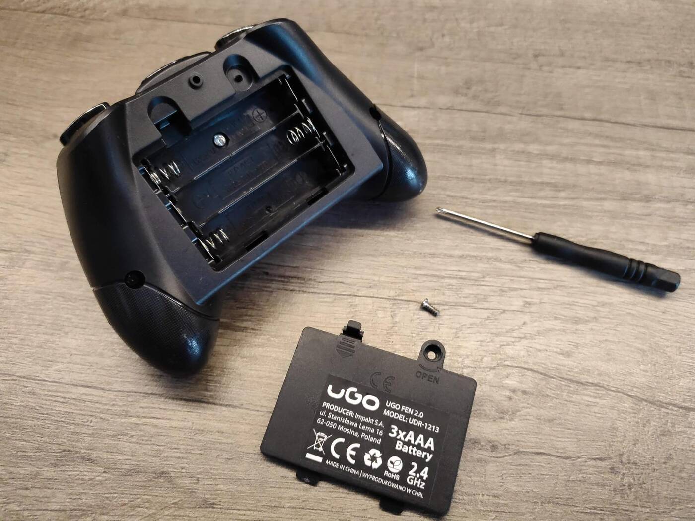Sam kontroler jest wykonany z taniego plastiku, ale wydaje się solidny, co tyczy się również samych gałek i przycisków, które nie powinny odmówić zbyt szybko posłuszeństwa. Z dronem komunikuje się za pośrednictwem pasma 2,4 GHz.