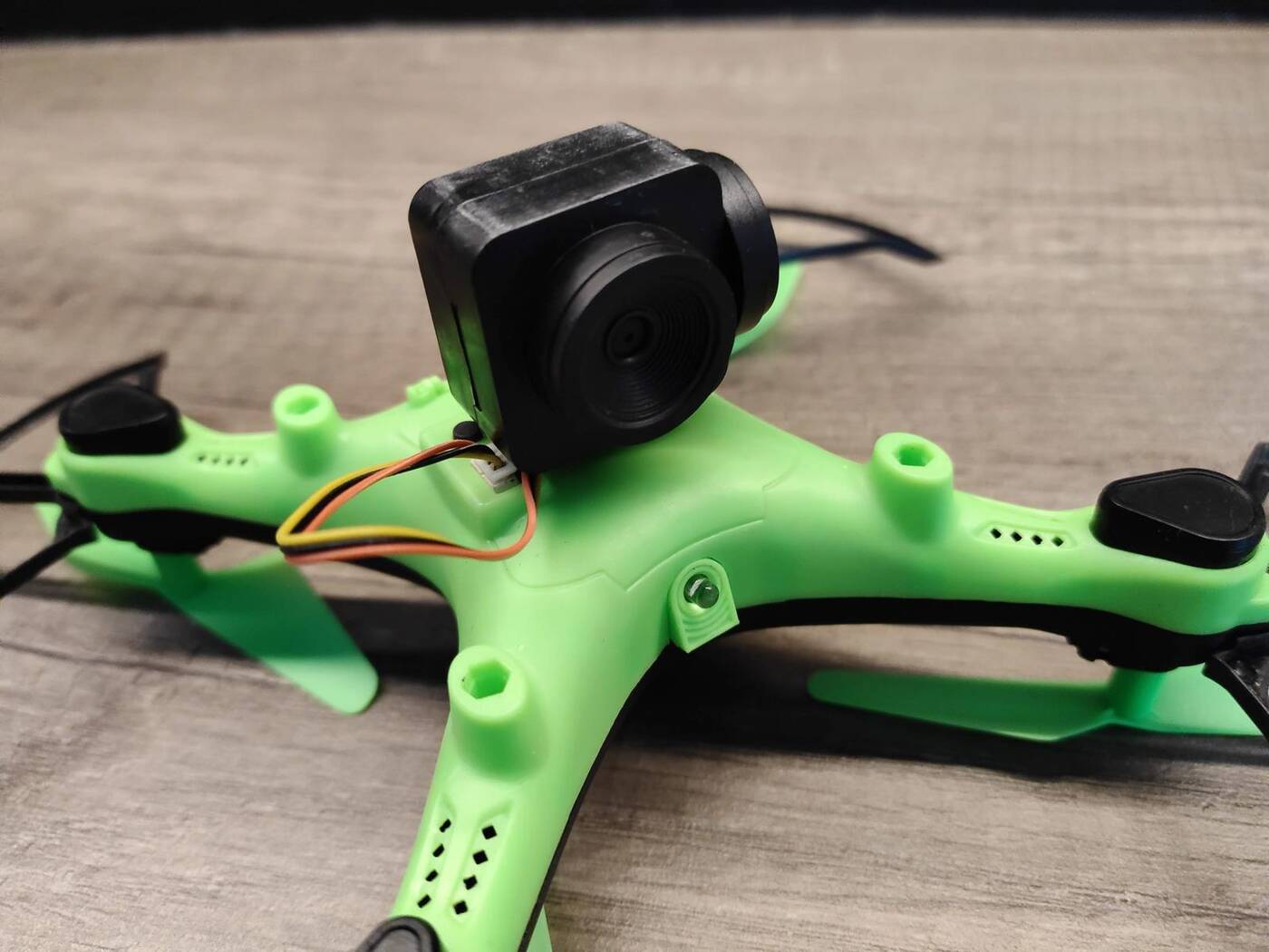 To, co w dronie może zaskoczyć, to możliwość łatwego pozbawienia go modułu kamery, osłon na śmigła i samych podstawek, aby poprawić jego osiągi. Najlepiej zresztą zrobić to od razu w przypadku kamery, która pozwala na nagrywanie w zaledwie 480p, więc przynajmniej w moich oczach, jest ona zbędnym dodatkiem i mogłaby nawet nie trafiać na pokład tego modelu. Osłony jednak, jak to osłony, lepiej zostawcie przy locie w pomieszczeniach, żeby nie poniszczyć samych śmigieł albo czegoś w otoczeniu.