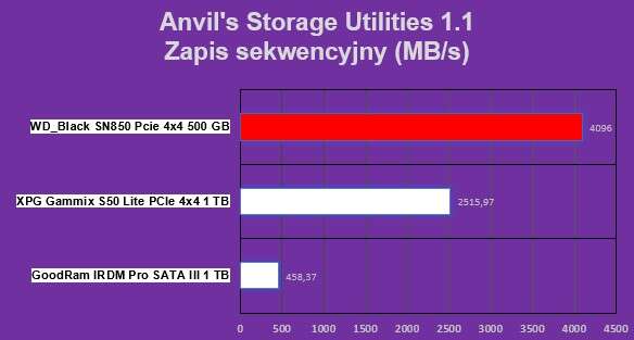- PCIe 4.0×4 – 7100 MB/S i 6600 MB/s (Sabrent Rocket 4 Plus TB – obecnie najwydajniejszy nośnik na PCIe 4.0×4)