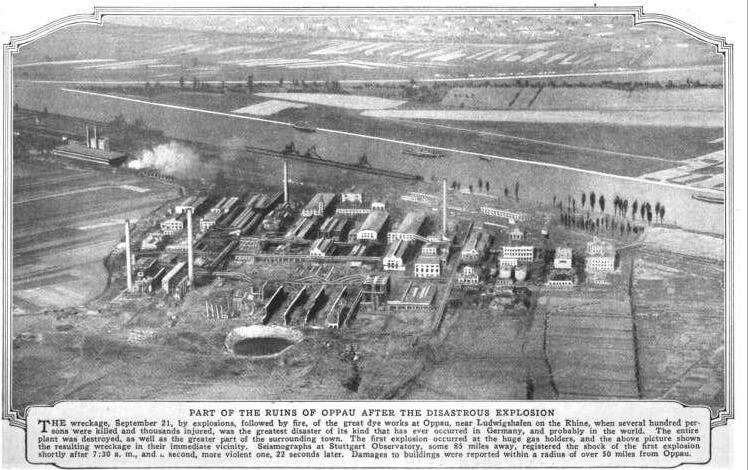 Wkrótce po zakończeniu pierwszej wojny światowej na terenie Niemiec doszło do katrastrofalnej w skutkach tragedii przemysłowej. Podobnie jak w Libanie, również w Oppau głównym winowajcą wybuchu był nawóz. Tam jednak nie chodziło o saletrę amonową, lecz mieszaninę siarczanu amonu i materiału na bazie azotanu amonu. Rozmiar strat w ludziach był naprawdę poważny, choć prawdopodobnie nie znaleziono wszystkich poległych. Liczbę zmarłych w wyniku eksplozji oszacowano na ok. 500-600. Ponad 2000 przebywających w pobliżu osób odniosło z kolei mniejsze lub większe obrażenia. O skali zniszczeń może świadczyć fakt, iż powstały na miejscu krater miał niemal 20 metrów głębokości, a jego pozostałe wymiary wyniosły 90 na 125 metrów. Co więcej, 80% budynków na terenie Oppau nie nadawało się do ponownego zamieszkania.