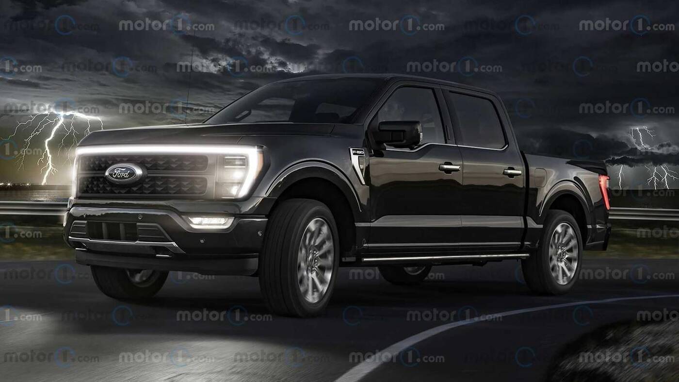 Na początku tego roku zwiastun modelu zasugerował, że ten elektryczny F-150 będzie wyglądał dość podobnie do modelu z 2021 roku, co przeniesiono na renderowanie, które wygląda prawie nie do odróżnienia od jakiegokolwiek innego F-150. Jednak wielki pasek świetlny na przodzie o pełnej szerokości wyróżnia F-150 EV na pierwszy rzut oka. Będzie to z pewnością jedna z niewielu różnic konstrukcyjnych, które Ford pokazał do tej pory.