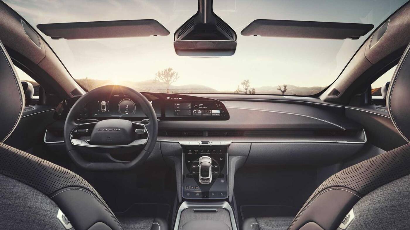Jak twierdzi sam producent, wnętrze Lucid Air „odzwierciedla rewolucję w sposobie, w jaki wyświetlacze nowej generacji o swobodnej formie są elegancko zintegrowane z architekturą kabiny, zapewniając piękny i płynny sposób interakcji z oprogramowaniem pojazdu i interfejsem użytkownika ukierunkowanym na człowieka”. Innymi słowy, w środku jest przyjemnie, a kierowca ma wszystko pod ręką.