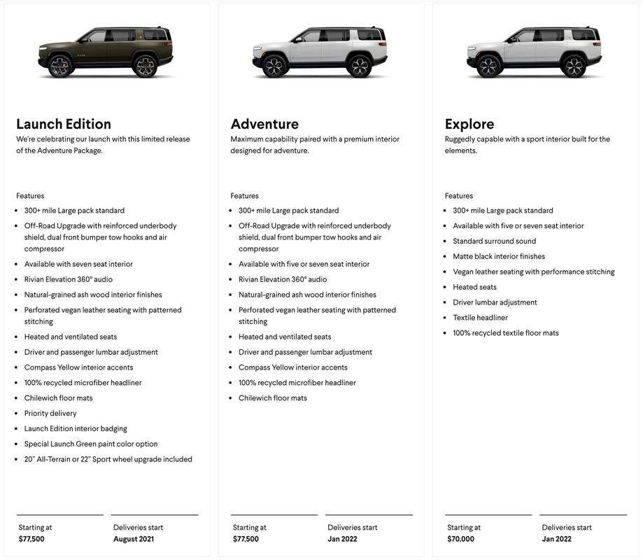 Tak więc, R1S w podstawie będzie znany jako model Explore, którego dostawy ruszą w styczniu 2022 roku, jak zresztą dostawy wydania Adventure. To jednak może trafić do szczęśliwców już w sierpniu 2021 roku w bogatszym, limitowanym wydaniu Launch Edition w tej samej cenie. Chętni muszą po prostu się pośpieszyć.