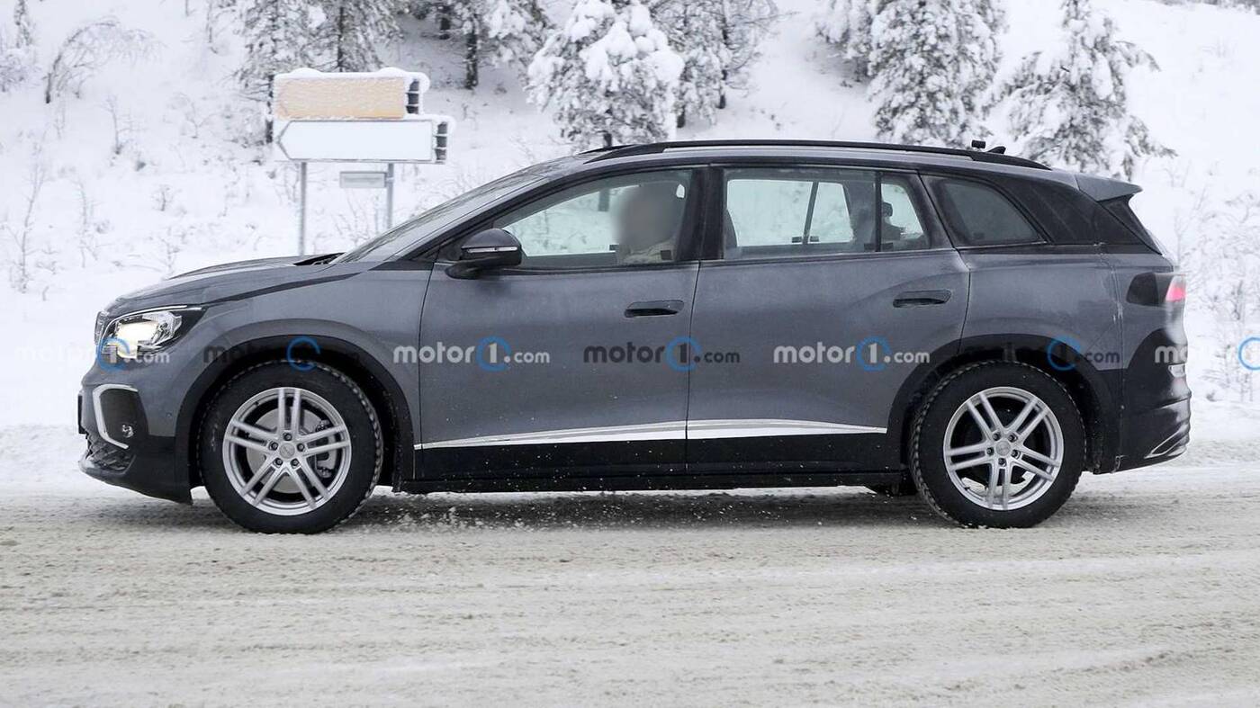 Nowiutkie zdjęcia szpiegowskie pokazują nam, że elektryczny Volkswagen ID.6 ciągle jest testowany w niskich temperaturach i ciągle (dla zmyłki) dzierży elementy nadwozia Peugeota 5008.
