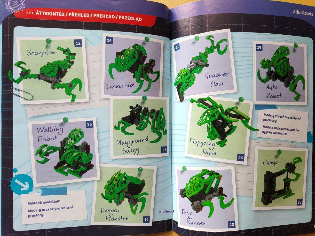 Zestaw zawiera instrukcję do stworzenia 10 różnych modeli. Ja zbudowałem dla Was trzy moim zdaniem najciekawsze – pozwoli to wystarczająco zapoznać się z podesłanym zestawem. Co ciekawe w instrukcji są pomylone strony, na których występują dane modele – czasami jest parę kartek w tył lub przód. Natomiast sama instrukcja ma opisy w języku polskim.