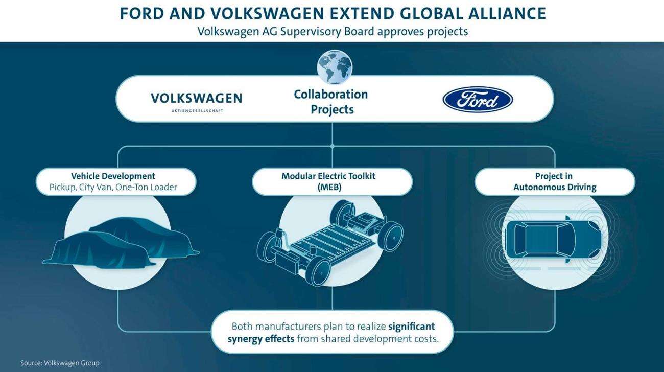 Z kolei Ford wykorzysta platformę pojazdów elektrycznych MEB VW do stworzenia swojego własnego elektrycznego samochodu specjalnie na rynek europejski.