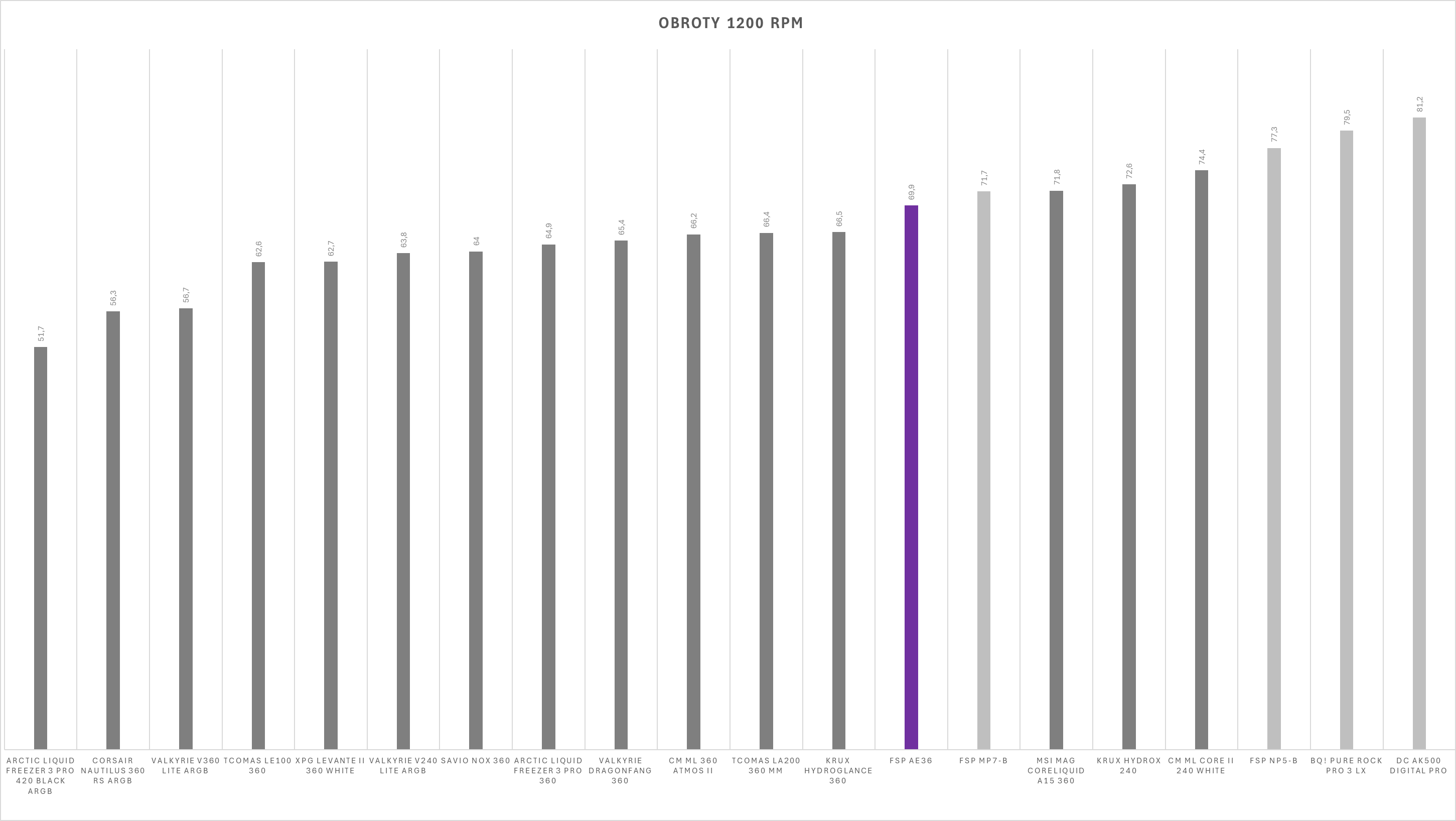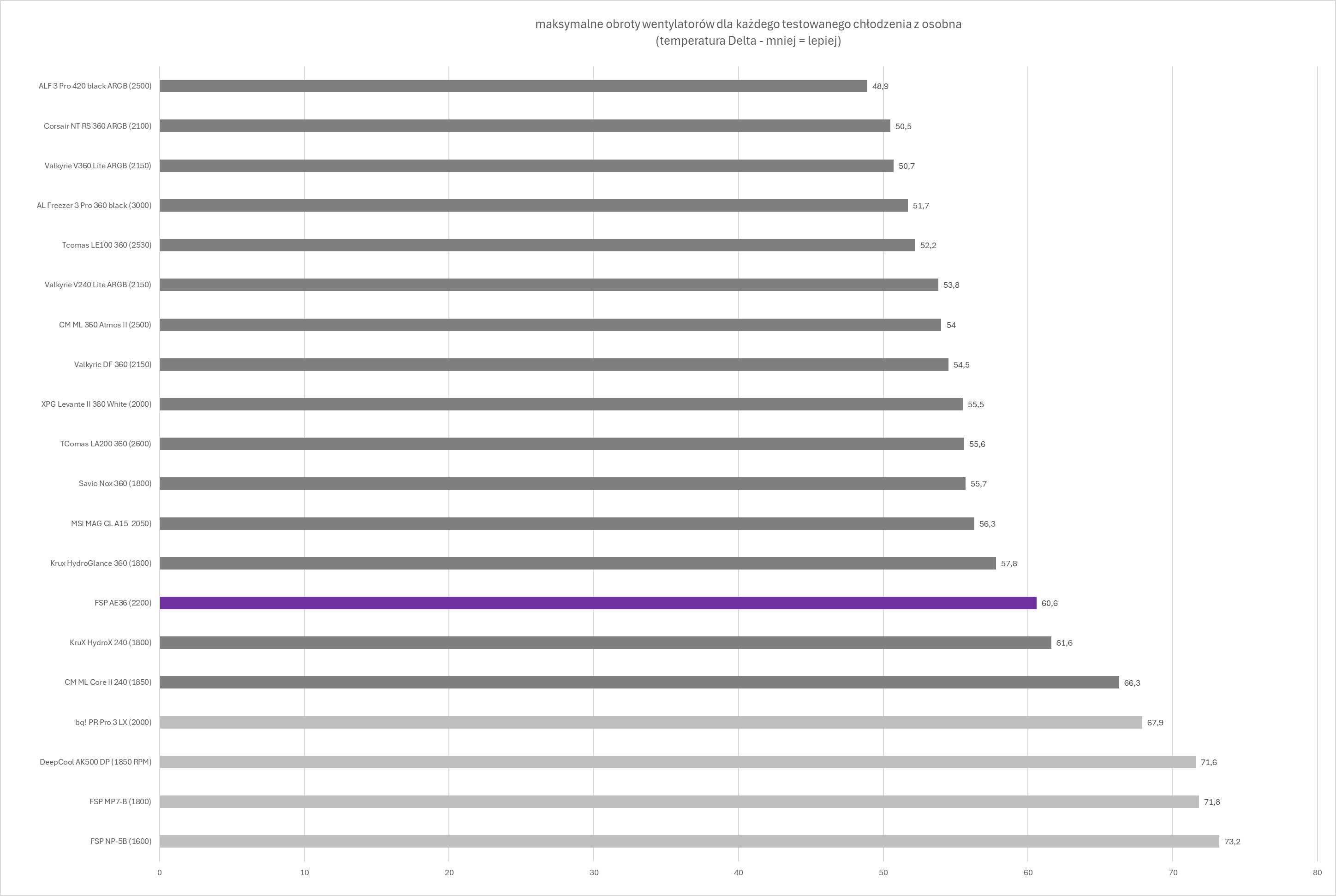 wykresy zbiorcze 800 / 1000 / 1200 / 1400 / 1600 / 1800 / 2000 oraz max RPM (pompka AIO: 100% RPM / Delta temperatury)