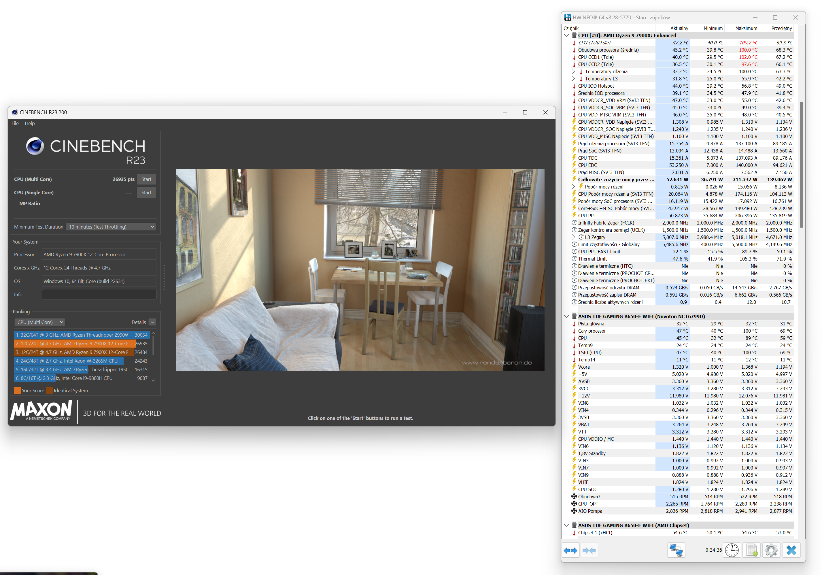 AMD Ryzen 9 7900X ~ 170W (domyślne TDP dla tego procesora)