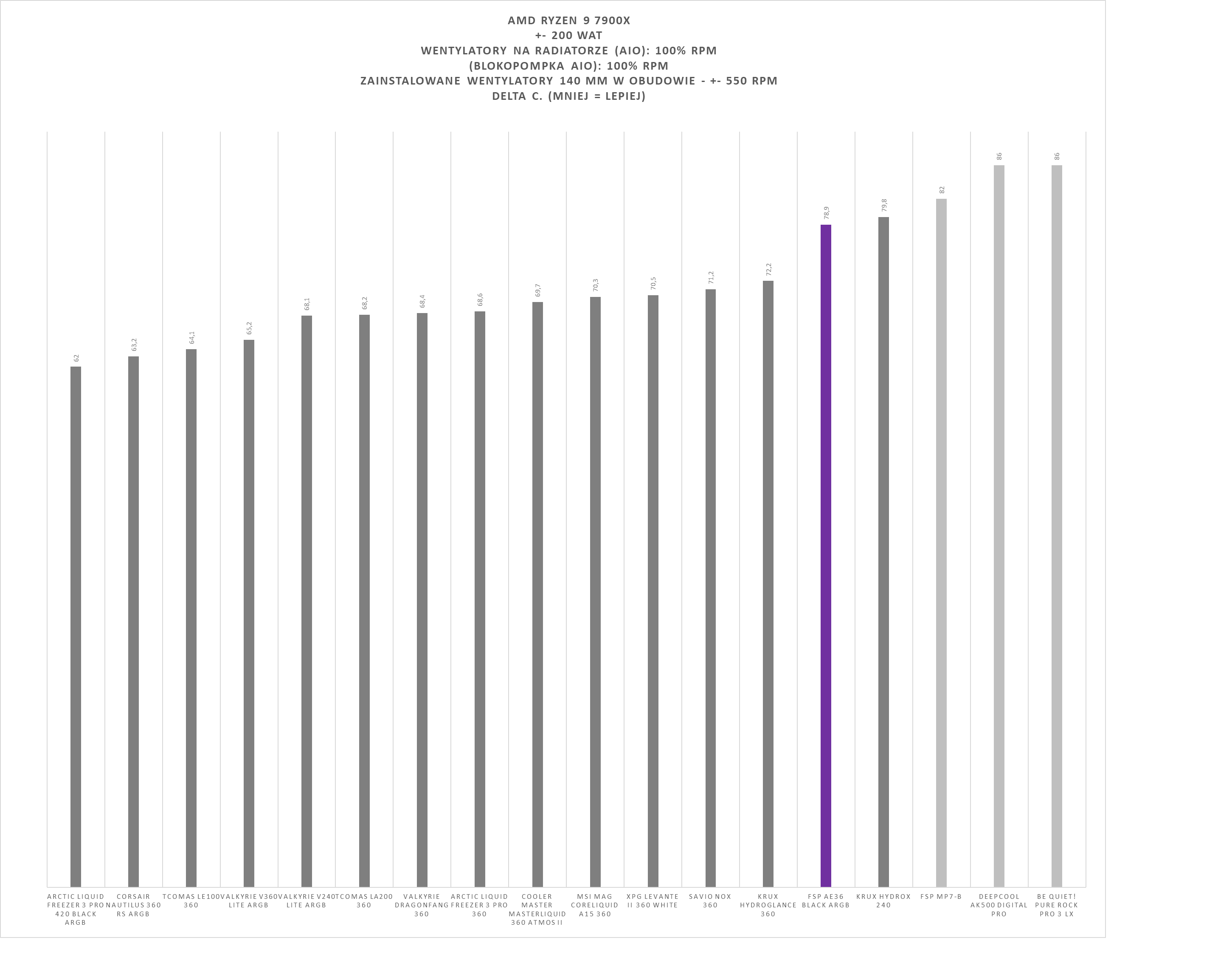 testy wydajnościowe TDP: ~ 100W / ~ 150W / ~ 200W / ~ 225W (delta temperatury – odchylenie WAT max 5%)