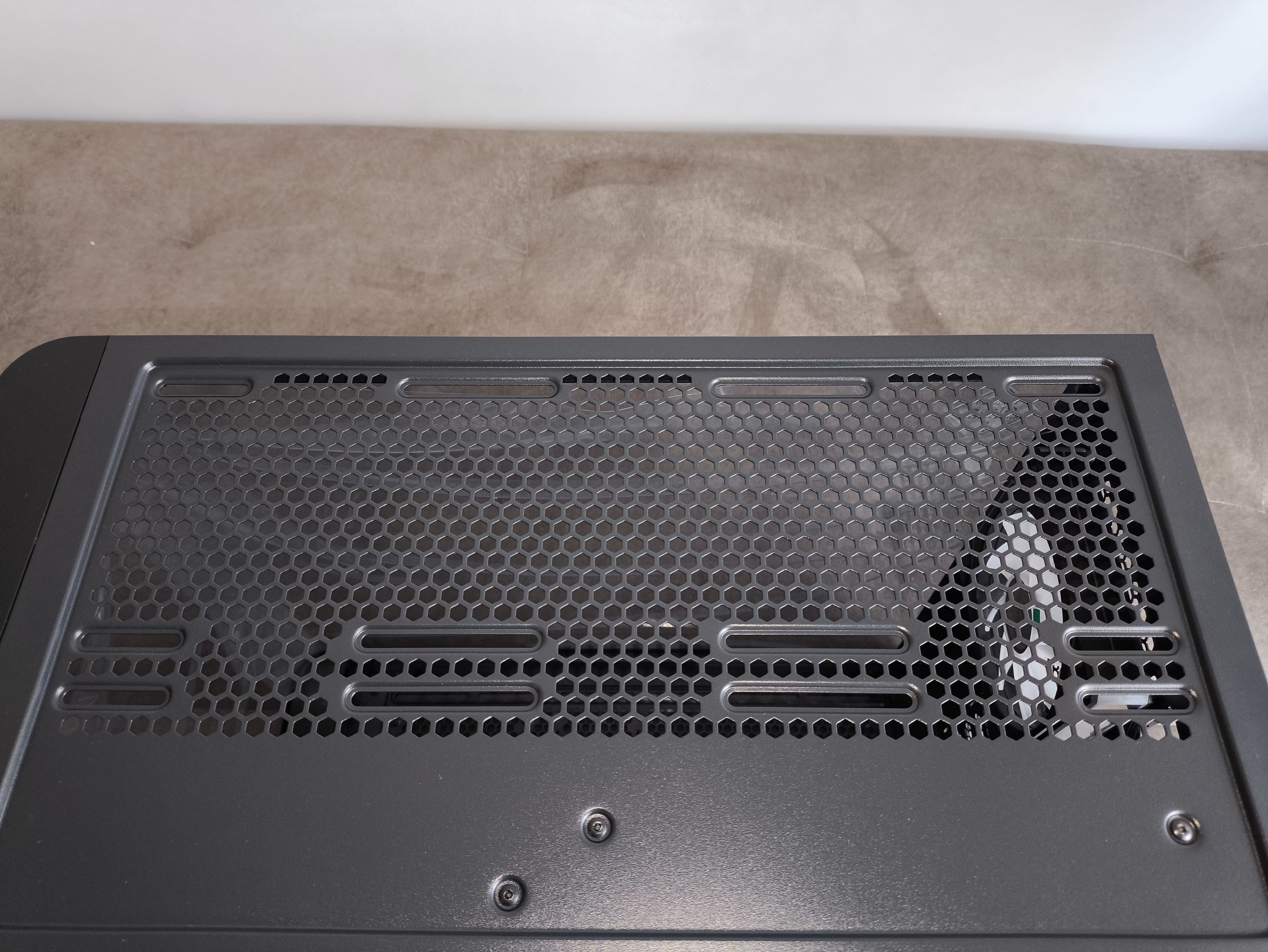 Górny panel wyposażono w magnetyczny filtr przeciwkurzowy, chroniący wnętrze przed większymi zabrudzeniami. Pod nim można zamontować trzy wentylatory 120 mm lub dwa 140 mm, a także chłodnicę do 360 mm (pasuje również 280 mm).