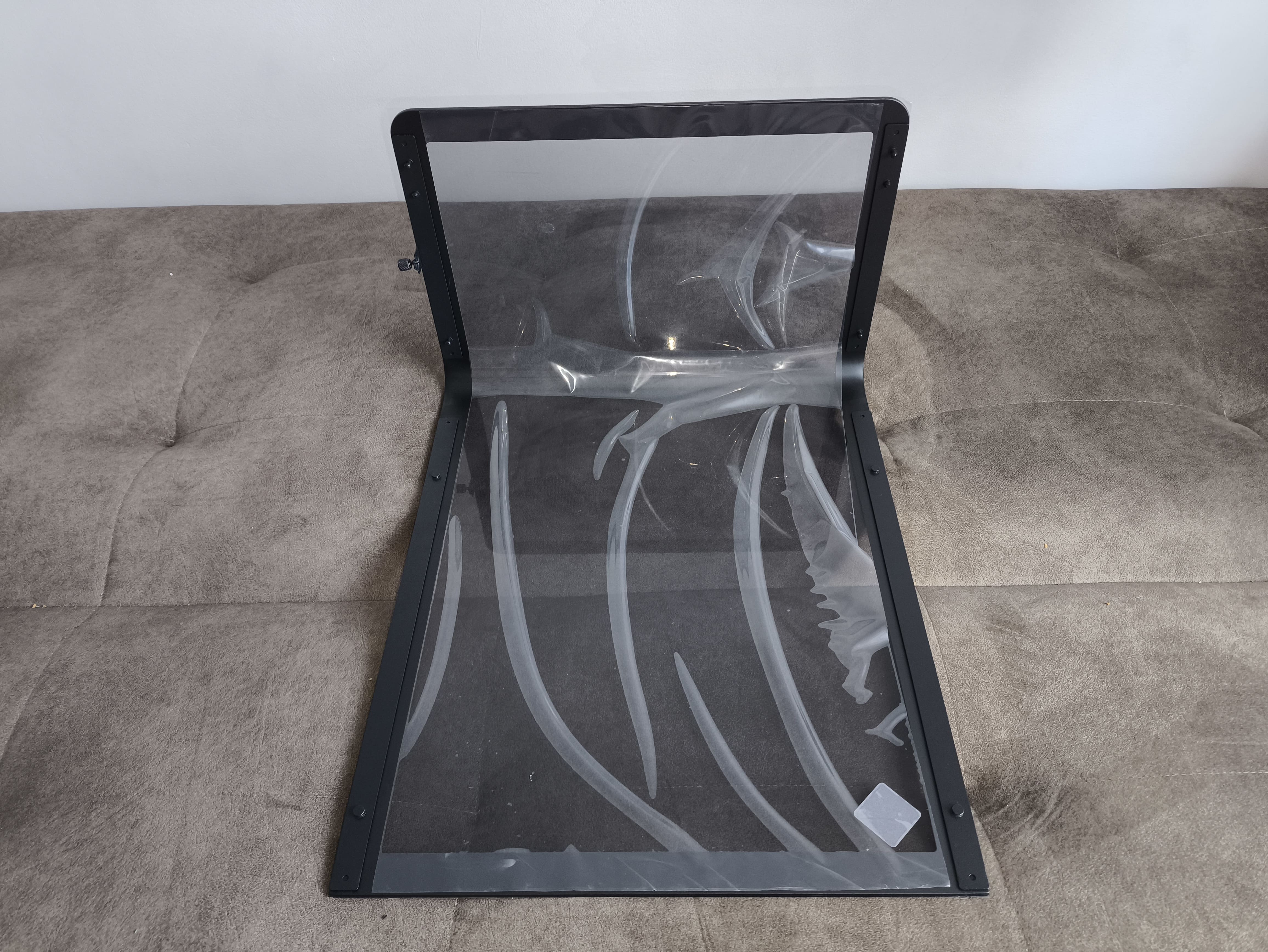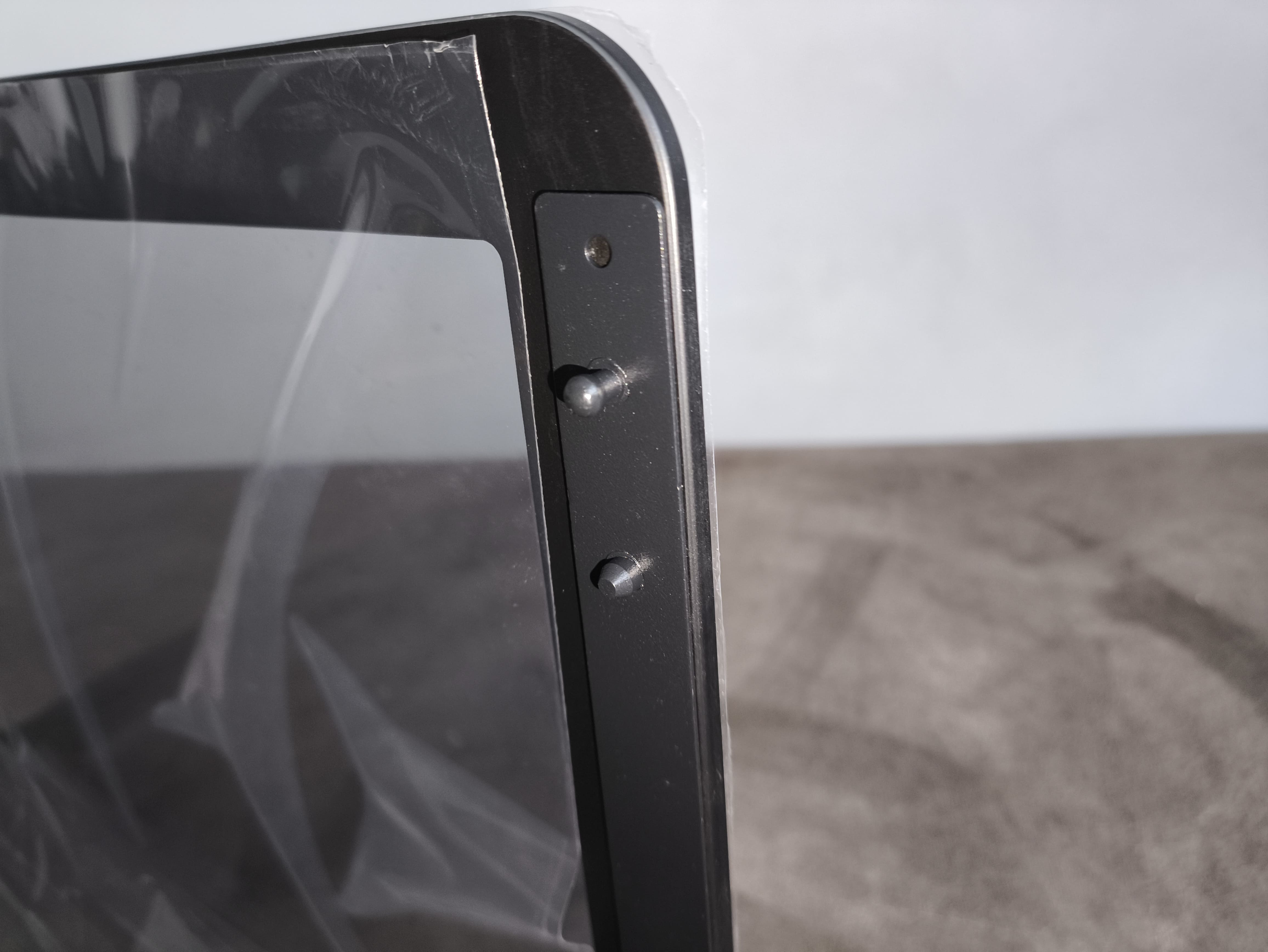 Panel mocowany jest na wcisk od przodu, a boczne szyny zapewniają stabilność. Dodatkowo dolny wkręt motylkowy zabezpiecza całość, dzięki czemu efekt pozostaje czysty i elegancki, bez widocznych elementów montażowych.