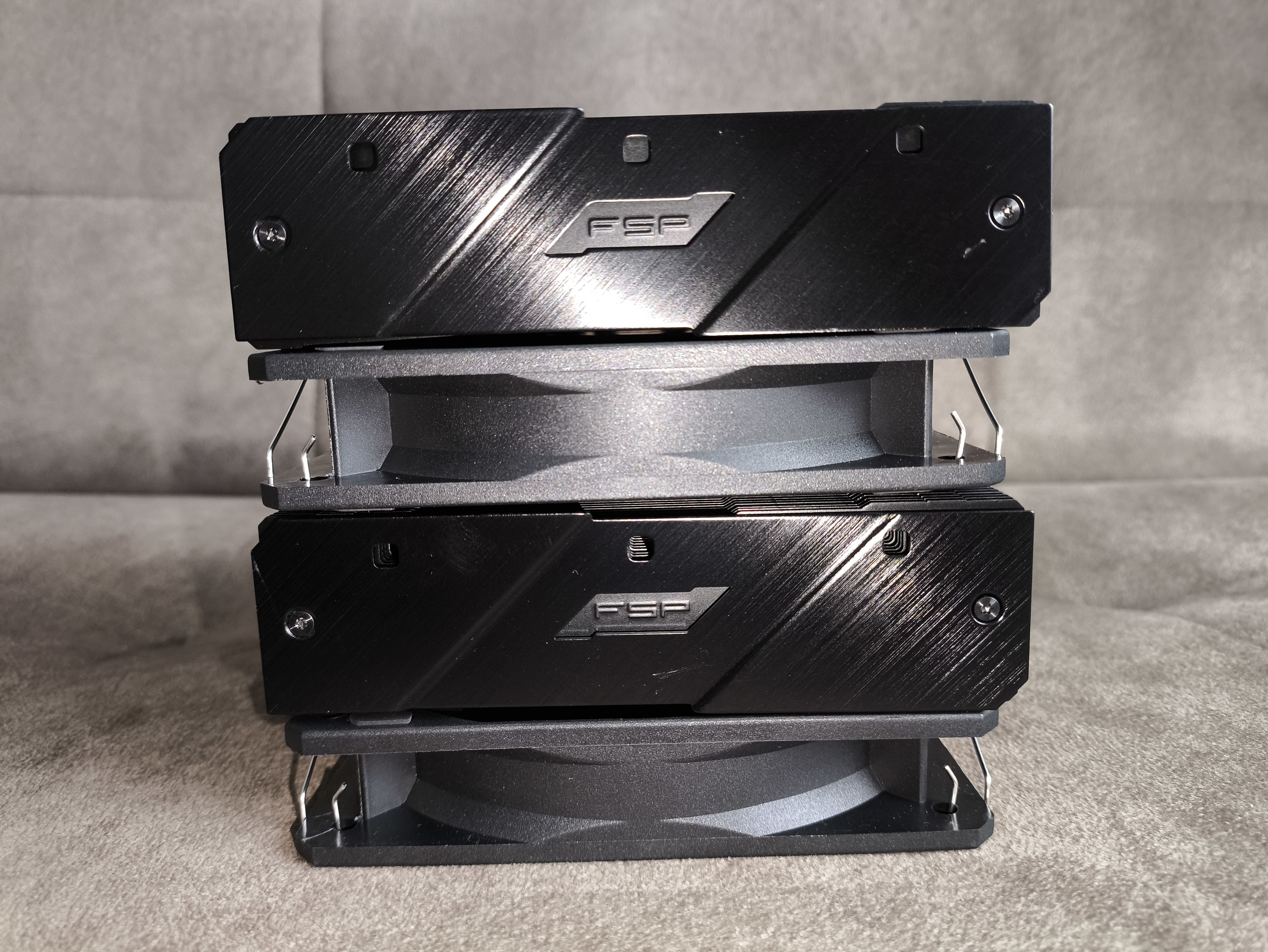 Chłodzenie FSP NP5 w wersji podstawowej wyposażono w cztery miedziane rurki cieplne z bezpośrednim stykiem z procesorem, co pozwala na efektywne odprowadzanie ciepła. Model MP7 korzysta już z sześciu standardowych rurek cieplnych – i w zasadzie trudno znaleźć konstrukcje powietrzne, które oferowałyby ich więcej w wariancie z bezpośrednim stykiem. Radiatory w obu modelach – NP5 i MP7 – oparto na tej samej, prostej i pozbawionej zbędnych dodatków konstrukcji.