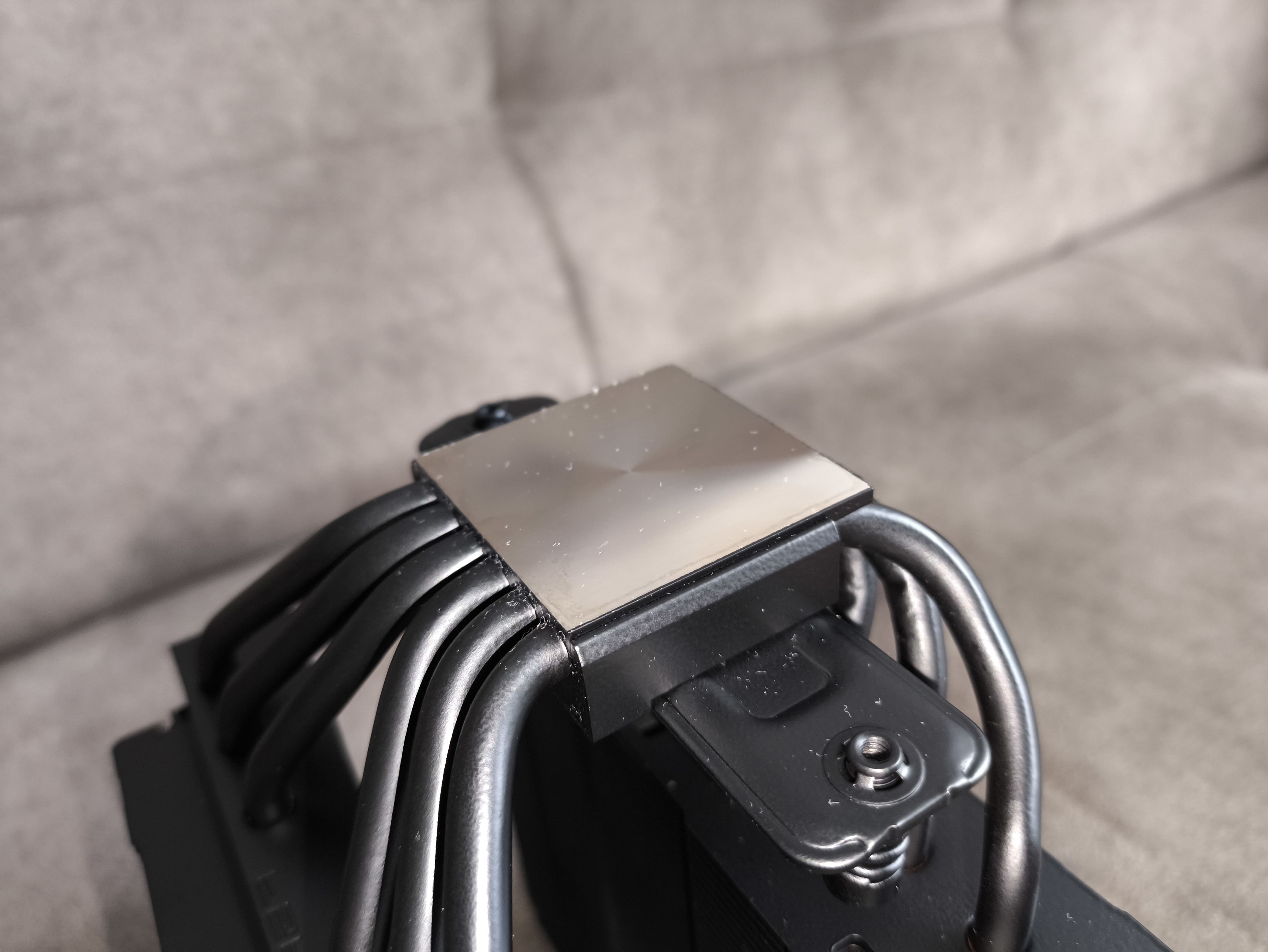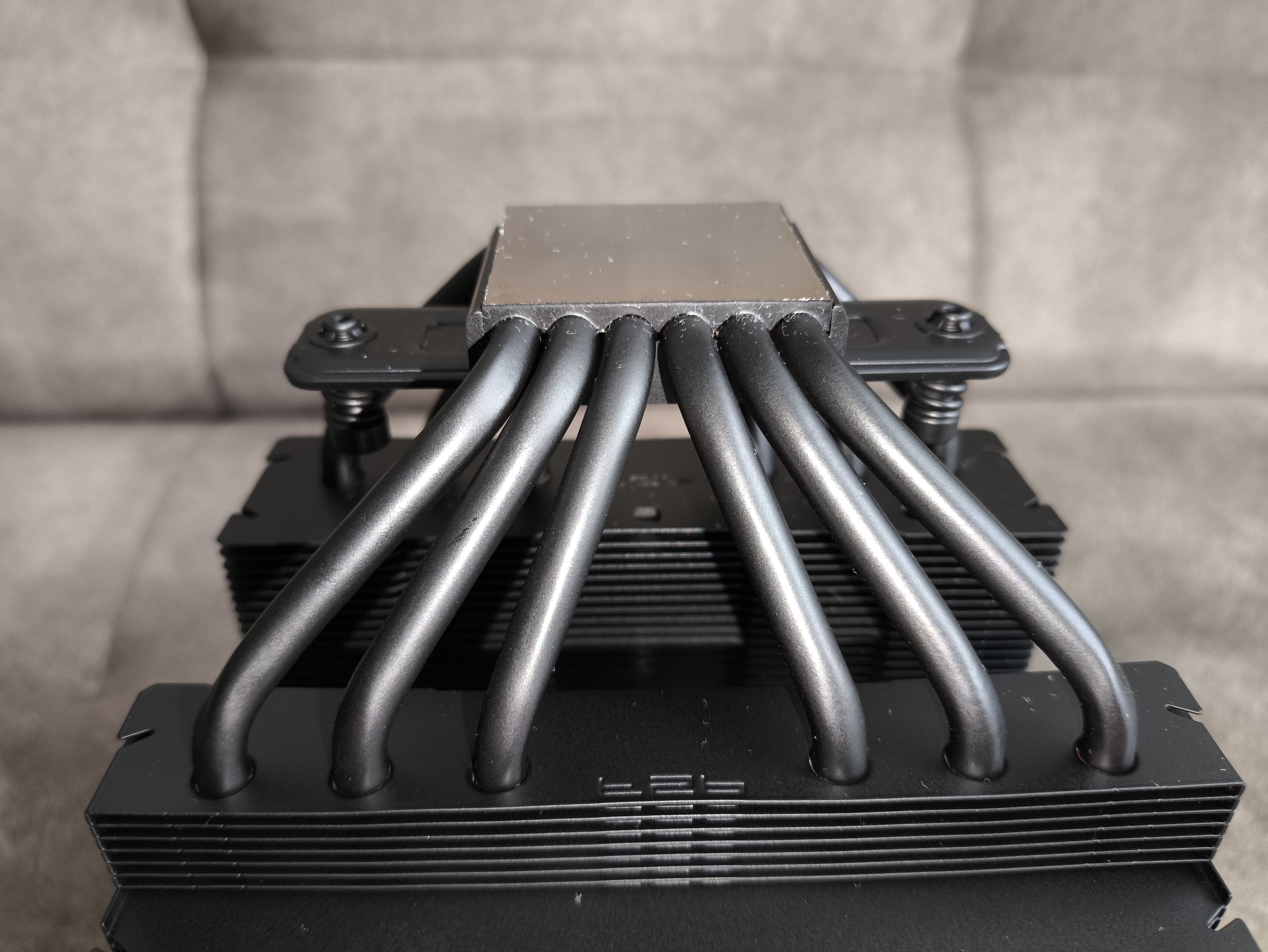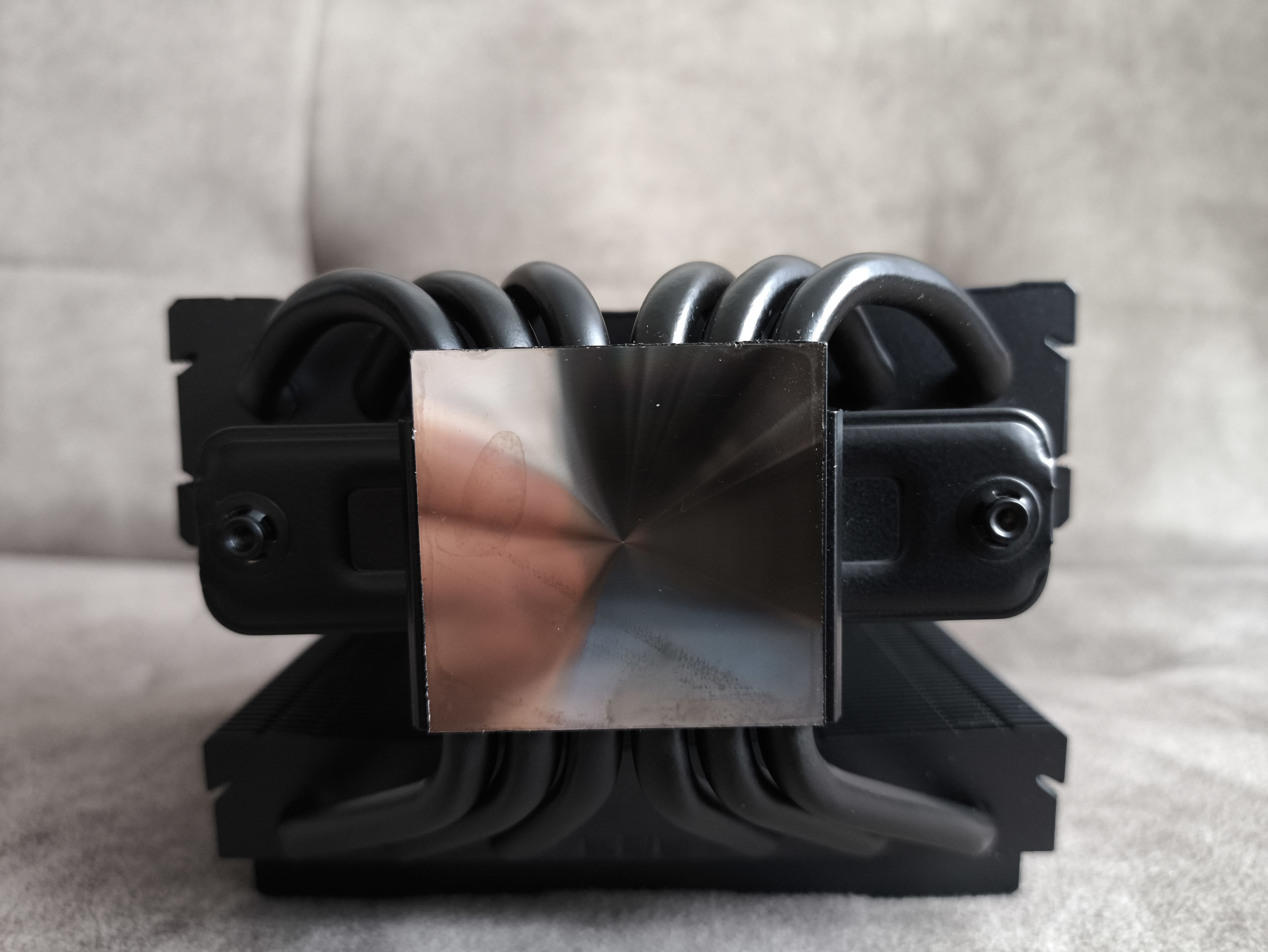 Przyzwoicie prezentuje się powierzchnia styku radiatora która jest dużo bardziej rozbudowana niż w modelu NP5-B. Jednakże po zdjęciu folii ochronnej podstawa cieplna sprawiała wrażenie lekko tłustej, co było dość nietypowym widokiem – ale być może to było tylko złudne odczucie. Nie musi mieć to negatywnego przełożenia na transfer ciepła i zapewne nie ma, ale pozostawia mieszane wrażenia estetyczne i jakościowe.