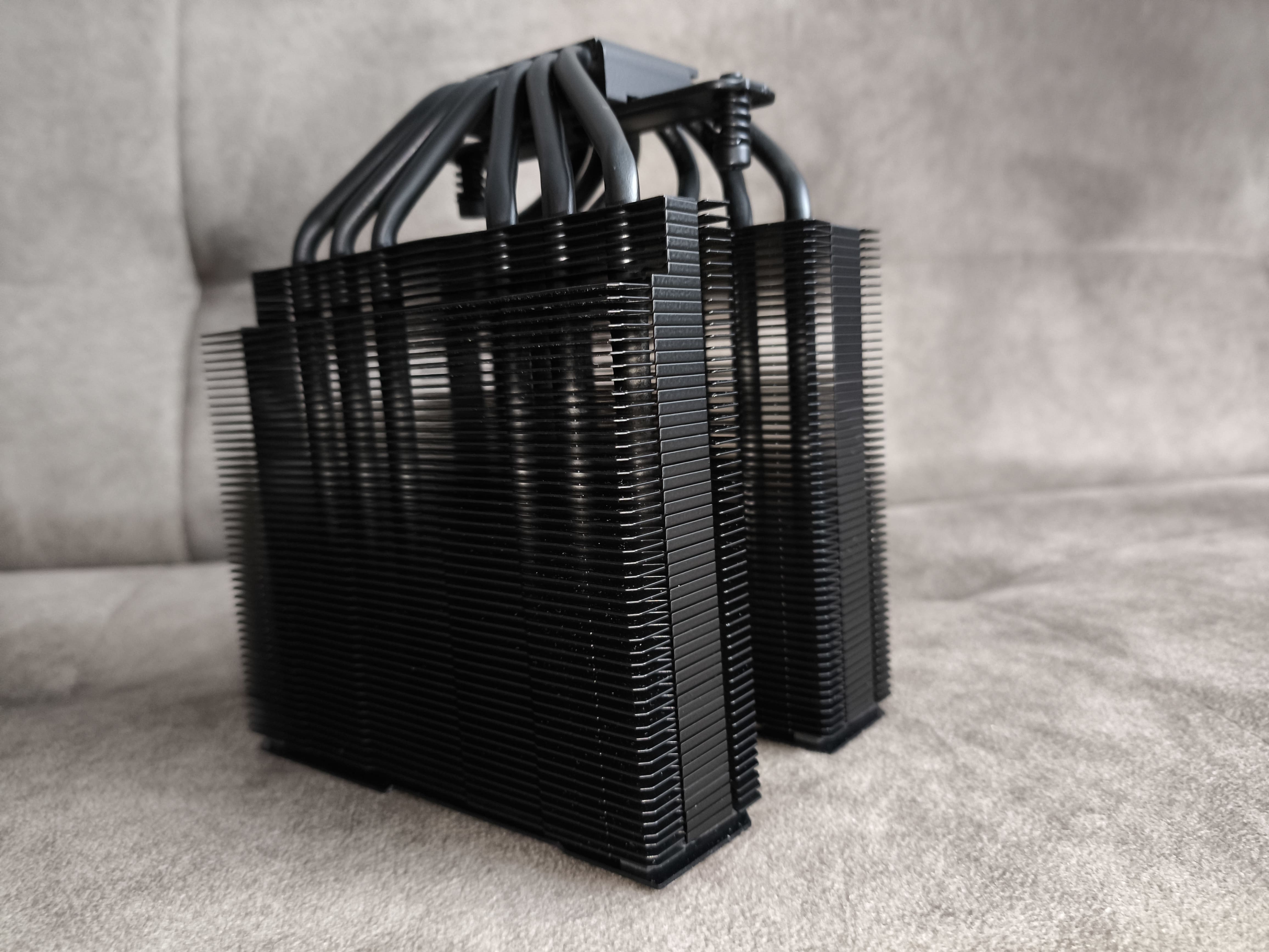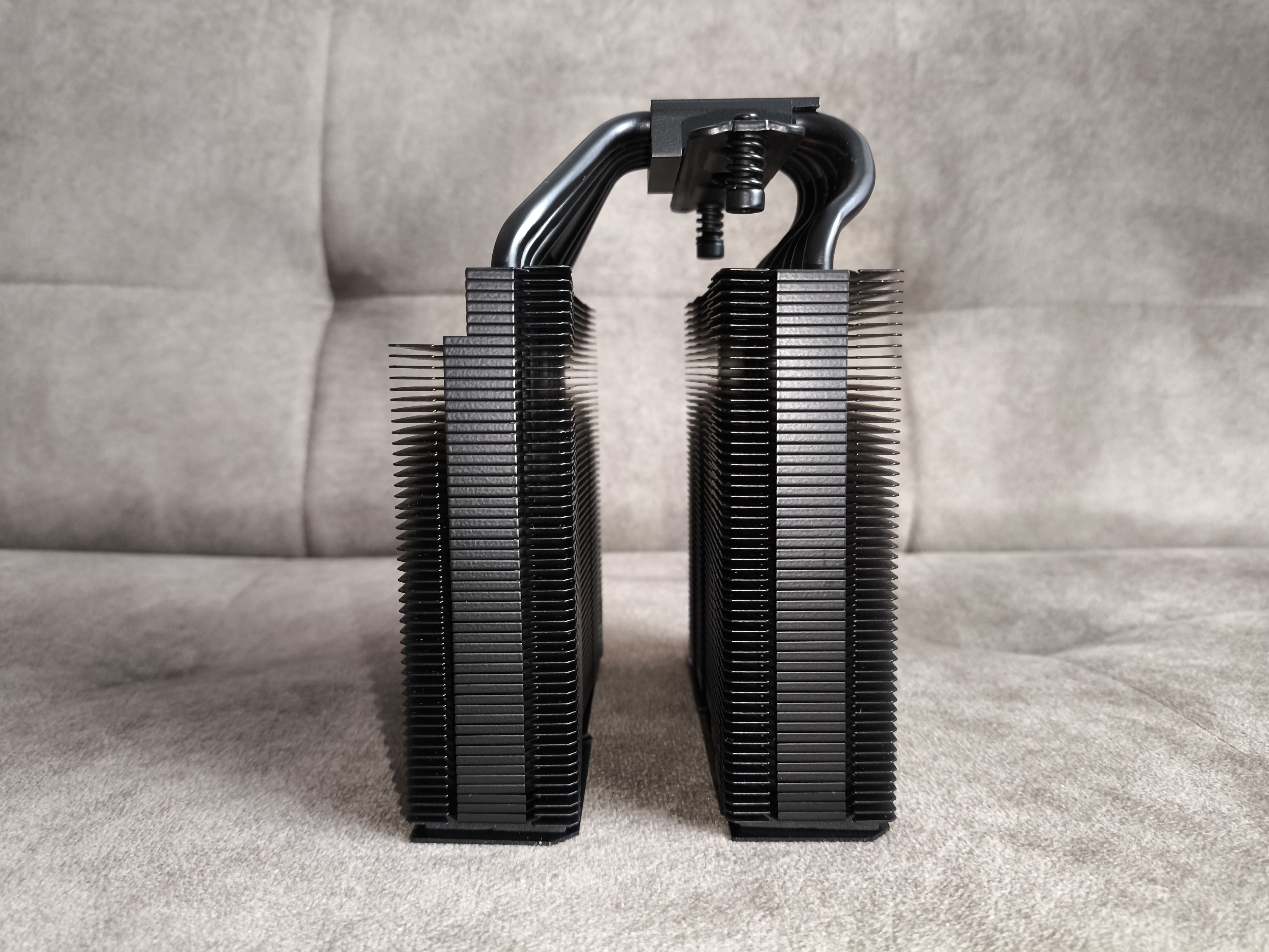 Chłodzenie mierzy 125 x 123.5 x 153 mm, z czego te 153 mm to wysokość całkowita wraz z wentylatorami. Masa zestawu wynosi maksymalnie 905 gram, także praktycznie jest to niemal drugie tyle co w modelu NP5-B.