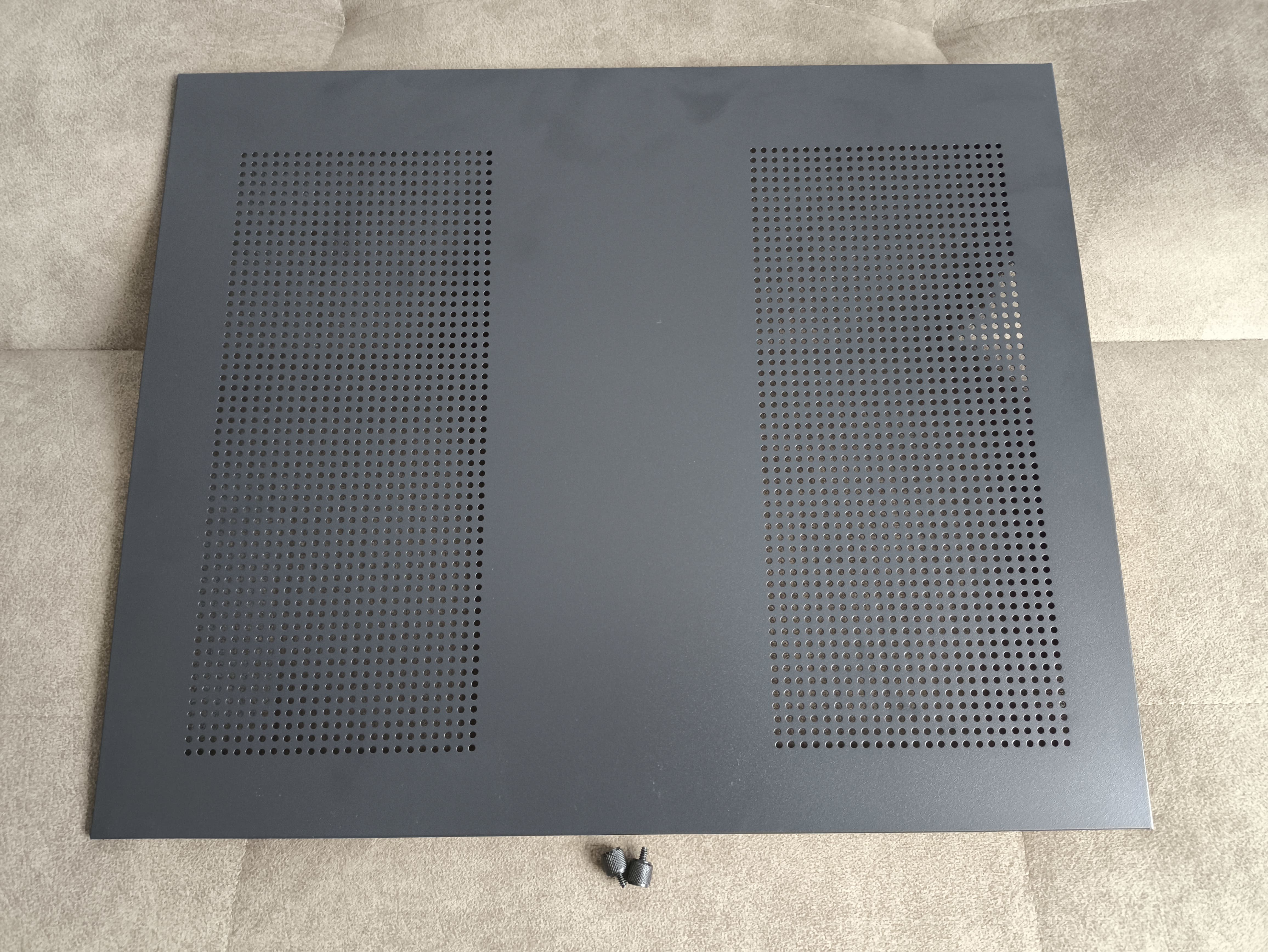 Druga strona obudowy wykonana jest z gładkiej blachy i posiada dwie duże perforowane strefy (o wymiarach 120 × 302 mm), które doprowadzają świeże powietrze do bocznych wentylatorów oraz zasilacza. Niestety, oba otwory pozbawiono magnetycznych filtrów przeciwkurzowych, co moim zdaniem jest lekkim niedopatrzeniem.