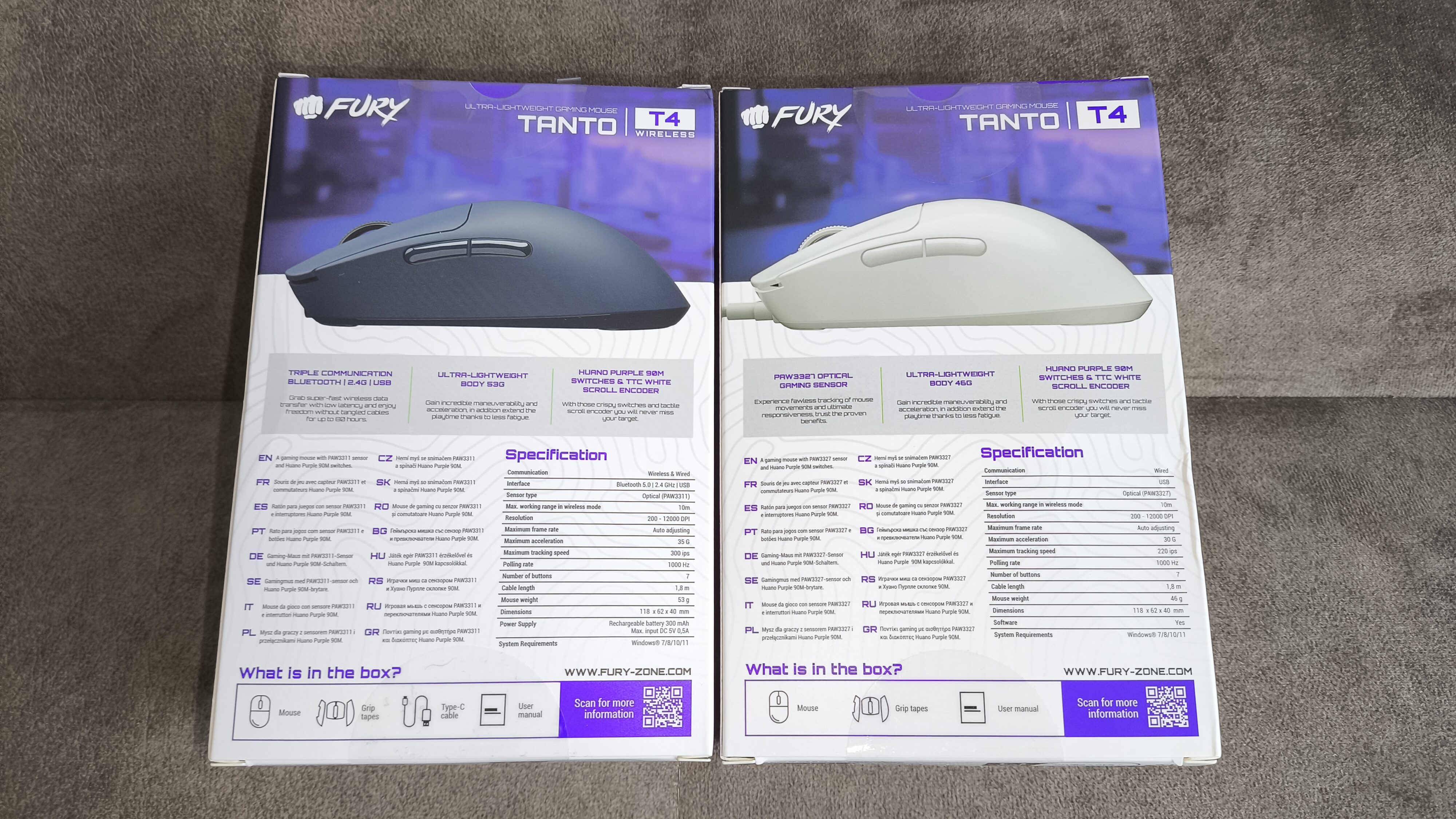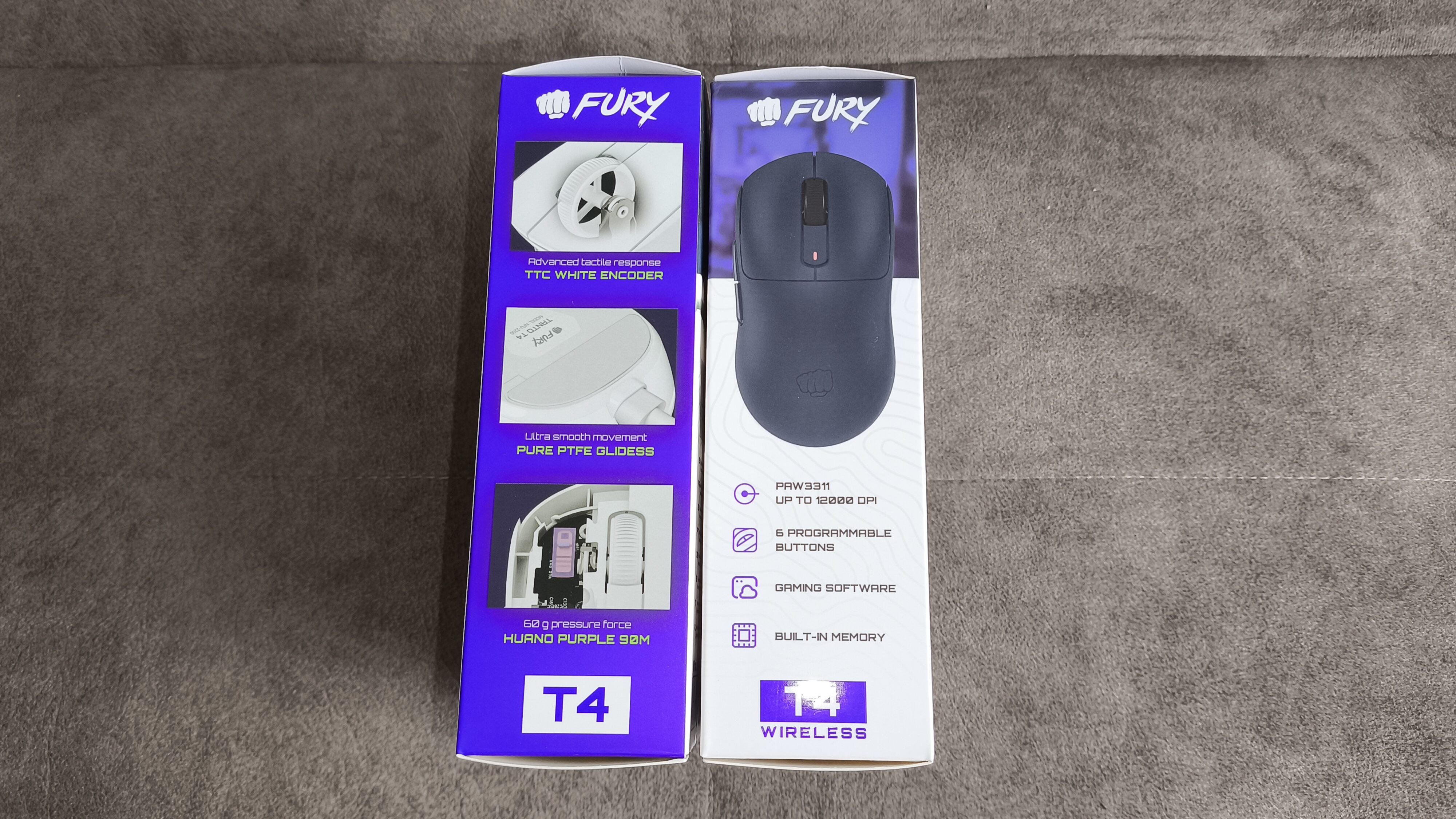 Obie wersje myszy zapakowane zostały w identyczne pudełka, różniące się jedynie szczegółami specyfikacyjnymi. Design opakowania jest atrakcyjny, z czytelnymi grafikami, renderami i skróconym opisem funkcji. Ogólnie obie myszki są skierowane do młodszej klienteli co podkreśla samo Fury w swoich materiałach promocyjnych. Cytując: