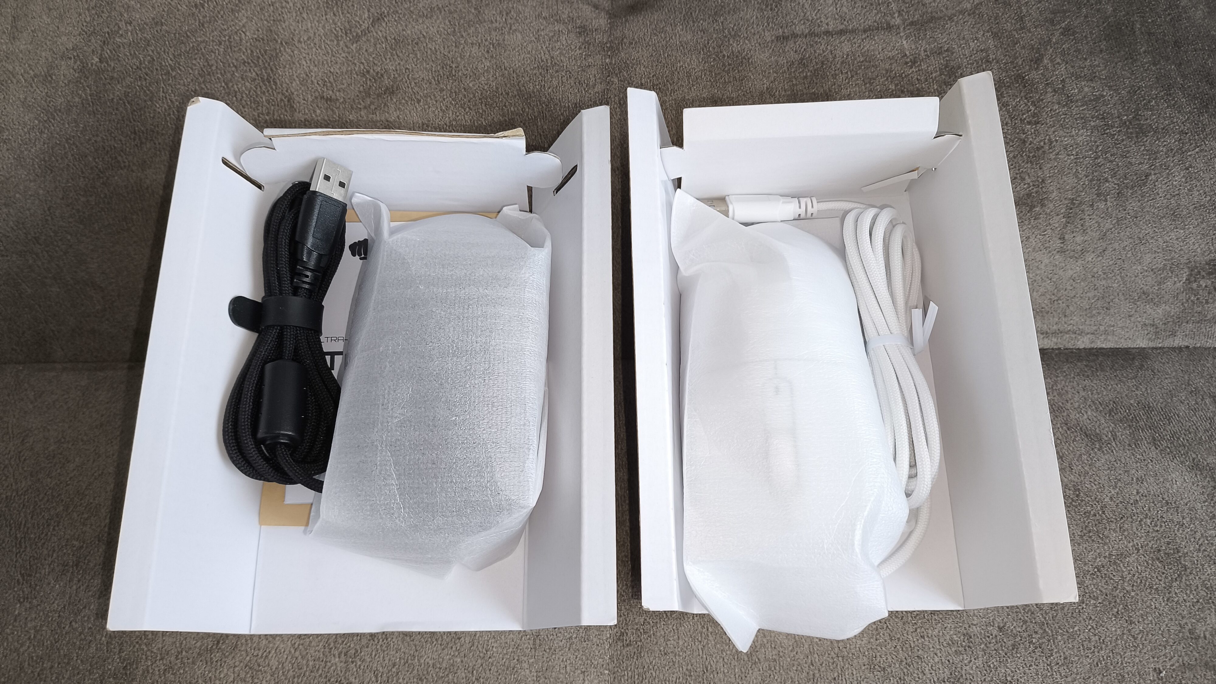W środku opakowań znajdziemy miłe zaskoczenie w postaci kompletnego zestawu naklejek typu grip – z niebanalnym wzorem i perfekcyjnym spasowaniem. Dodatkowo w wersji bezprzewodowej otrzymujemy przewód USB i odbiornik 2.4 GHz.