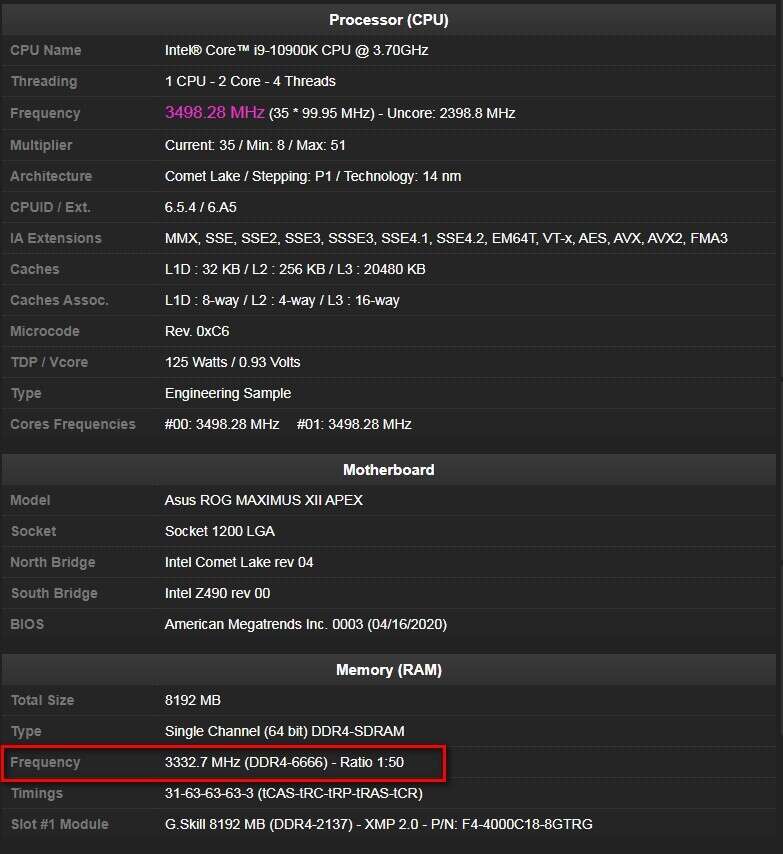 Zostały one podkręcone do niesamowitej wartości DDR-6666. Dokonano tego przy wykorzystaniu procesora Intel Core i9-10900K oraz płycie Asus ROG Maximus XII Apex.